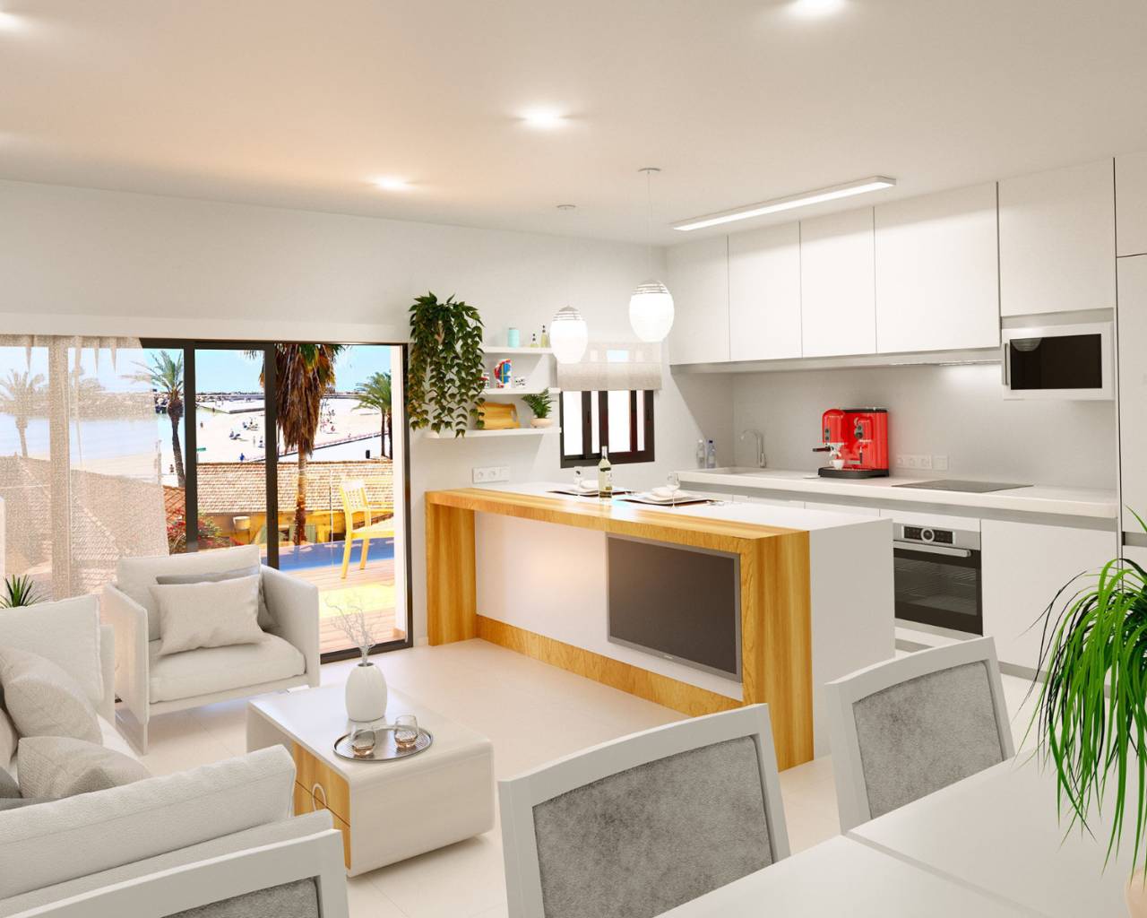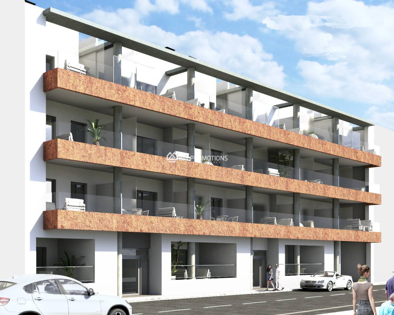 Ein modernes Gebäude, dass in 4 Treppenhäuser unterteilt ist, befindet sich im Zentrum von Torrevieja, nur 70 m von der „Playa del Cura“ und nicht weit entfernt liegt der Boulevard, wo Sie mehrere Restaurants, Bars, Geschäfte und Erholung finden. Es gibt Apartments mit 2 oder 3 Schlafzimmern und alle mit 2 Bädern. Die modernen Materialien und Oberflächen machen das Ganze zu einer Wohnung von hohen Qualitäten. Der Komplex verfügt über eine grosse "Patio", auf der sich ein von Pflanzen umgebener Gemeinschaftspool für die Eigentümer befindet und wo man vonn geniessen kann. Ein Teil der Dachterrasse gehört ebenfalls zu den öffentlichen Bereichen. Tiefgarage und Lagerung sind eine Option. Diese Penthouse verfügt über 3 Schlafzimmer und 2 Badezimmer. Es verfügt über einen grossen Wohn- und Küchenbereich, in dem Sie durch die grossen Schiebetüren auf die grosse Terrasse gehen können. Von der Terrasse über eine Treppe erreichen Sie die private Dachterrasse, auf der genügend Platz für einen Whirlpool vorhanden ist, damit Sie den Aufenthalt noch mehr geniessen können.Die Südausrichtung dieser Wohnung bietet viel Sonne und Licht, so dass Sie es jeden Tag geniessen können.