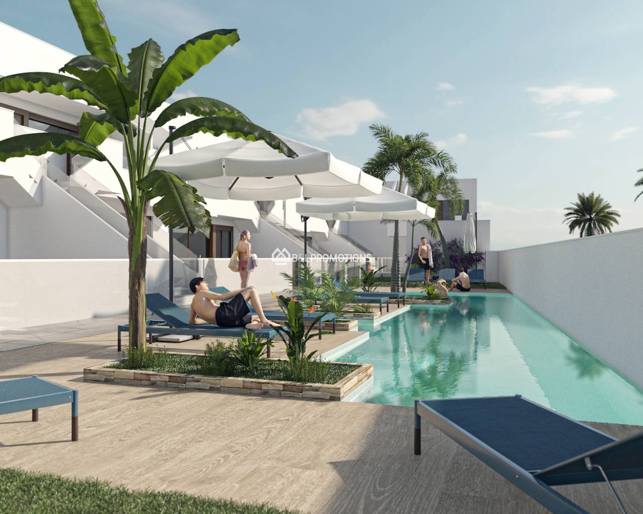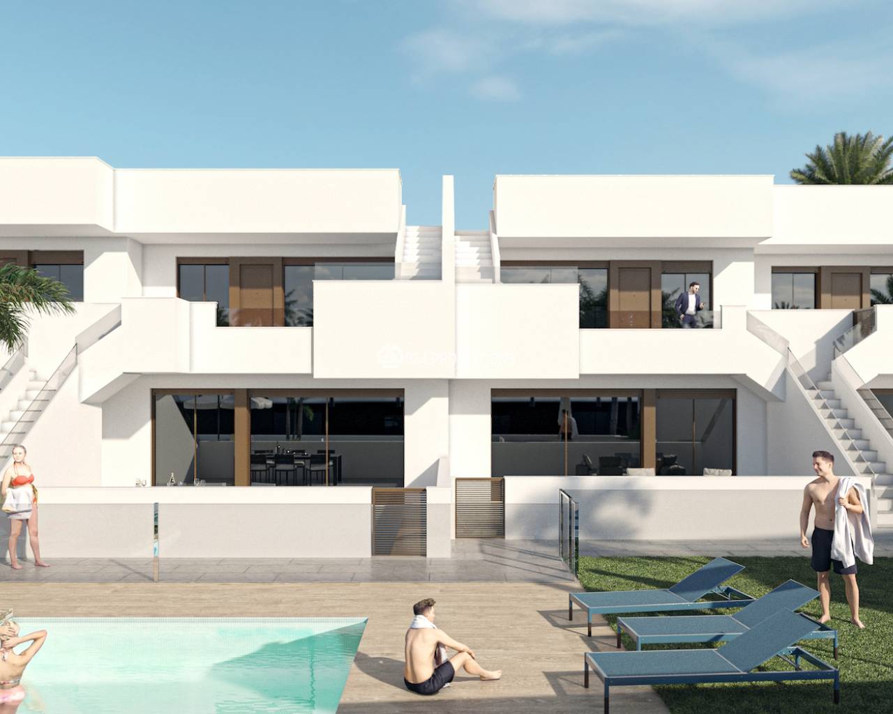 In Pilar de la Horadada, einem typisch spanischen Dorf und nur 500 Meter vom Zentrum entfernt, finden wir einen neue und moderne Apartments Komplex mit unteren und / oder oberen Etagen, mit einem Gemeinschaftspool und Grünflächen. Die Strände befinden sich von Zentrum Das Dorf auf ca. 3 km und mit dem Fahrrad können Sie den Strand von Torre de la Horadada in 15 Minuten über die „Rambla“ erreichen. San Pedro del Pinatar mit seinen Mar Menor Stränden liegt 4 km vom Komplex entfernt. Nur 5 Minuten zu Fuss von der Wohnung entfernt finden wir das Zentrum des Dorfes mit den Geschäften, Restaurants, Bars und Erholung. Golfbegeisterte haben den 6 km entfernten Golfplatz Lo Romero. Die Flughäfen von Alicante und Murcia kann in 45 Minuten erreicht werden. Diese Wohnung ist ein Erdgeschoss mit 2 Schlafzimmern und 2 Bädern, eine grosse Wohn und Küche Raum mit viel Licht, und mit grosse Schiebetüren, durch die man direkt auf die Terrasse des Hauses kommt und von wo aus man einen direkten Blick auf den Gemeinschaftspool hat. Es gibt einen Abstellraum auf der Terrasse und jedes Haus hat einen überdachten Parkplatz auf der Rückseite der Wohnung. Jedes Haus hat auch einen gemeinsamen Platz für Fahrräder. Die verwendeten Materialien sind modern und von hoher Qualität und die Erledigungen sind sehr professionell gemacht.