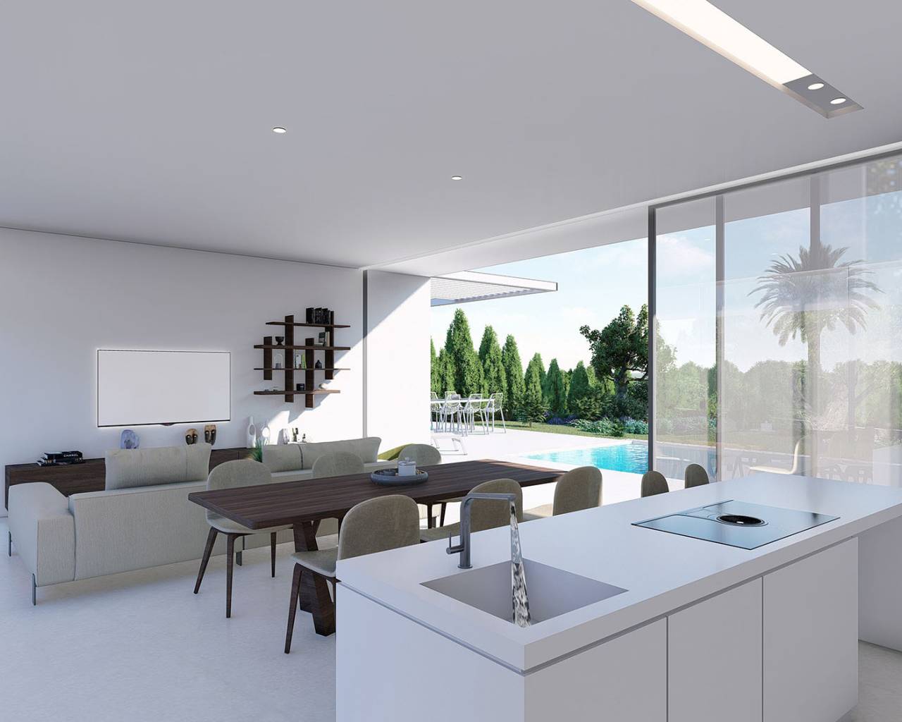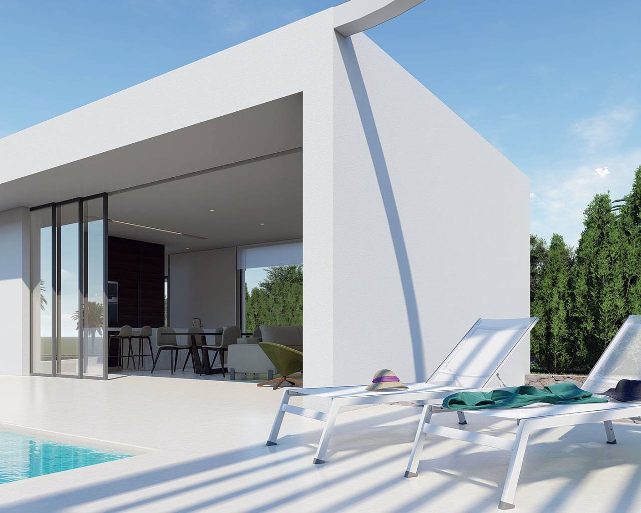 Diese Designervillen werden in einem der besten Komplexe angeboten. Ein ganz anderes Design in einem der besten Grundstücke dieses Golfkomplexes. Die Villa hat 2 Etagen. Im ersten Stock befindet sich ein grosses Wohnzimmer mit grossen Fenstern und Blick auf den Garten und den Wald. Im Wohnzimmer gibt es eine geräumige offene Küche und auf dieser Etage befinden sich 2 Schlafzimmer und 2 Badezimmer. Vom Wohnzimmer aus haben Sie Zugang zur grossen Terrasse, auf der sich der schöne Pool befindet. Im Erdgeschoss befindet sich eine Garage für 2 Autos, ein Wohnzimmer, 2 Schlafzimmer, zwei Badezimmer, eine Sauna, eine Waschküche und ein Technikraum. Das grosse Grundstück ist voll bepflanzt mit einer Mischung aus natürlichen Pflanzen und einer japanischen Gartenrealisierung.
