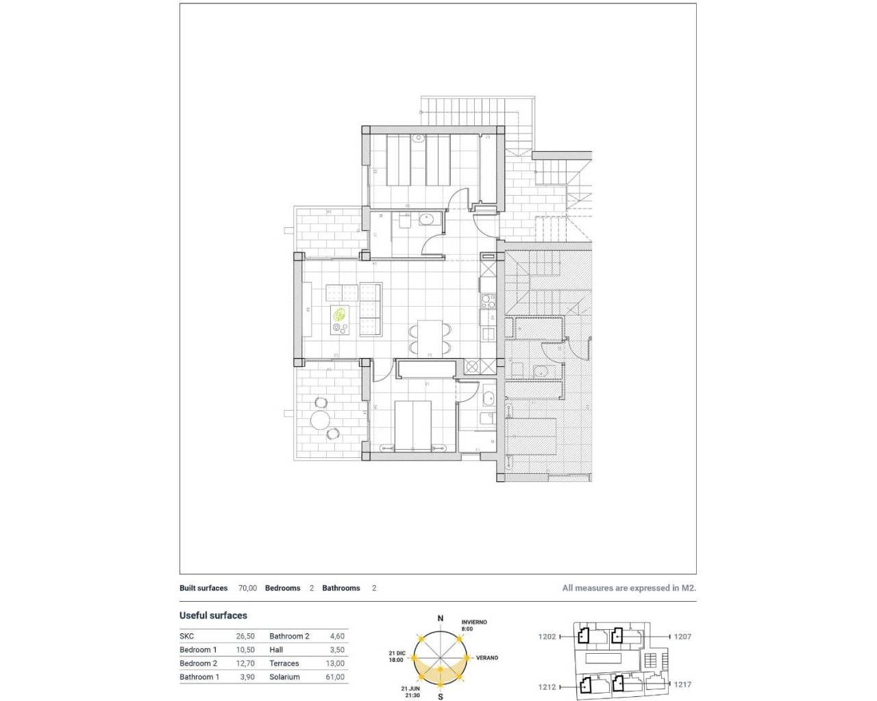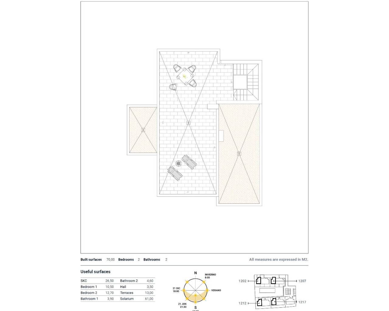 Diese hochwertigen Apartments sind geräumig, verfügen über 2 Schlafzimmer, 2 Bäder, ein Wohnzimmer mit offener Küche, 2 Balkone und eine riesige Dachterrasse mit atemberaubender Aussicht.