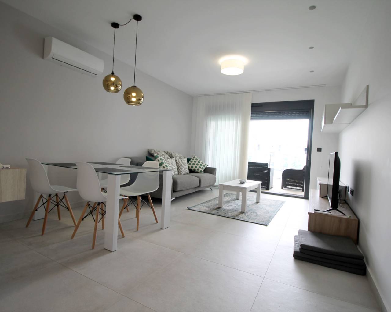 Die Wohnung ist geräumig. Es verfügt über ein großes Wohnzimmer mit offener Küche, 2 Schlafzimmer, 2 Bäder, einen Hauswirtschaftsraum und einen großen Balkon. Die Wohnung ist fast neu und ist komplett ausgestattet unter anderem mit Spülmaschine, Smart-TV, Internetanschluss (gegen Gebühr) und Waschmaschine.