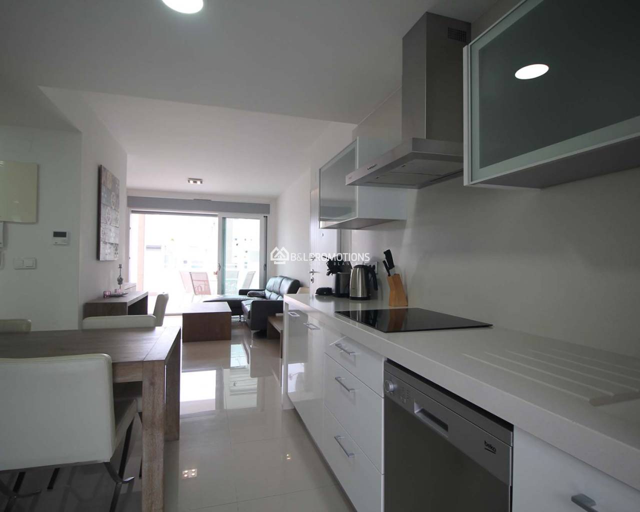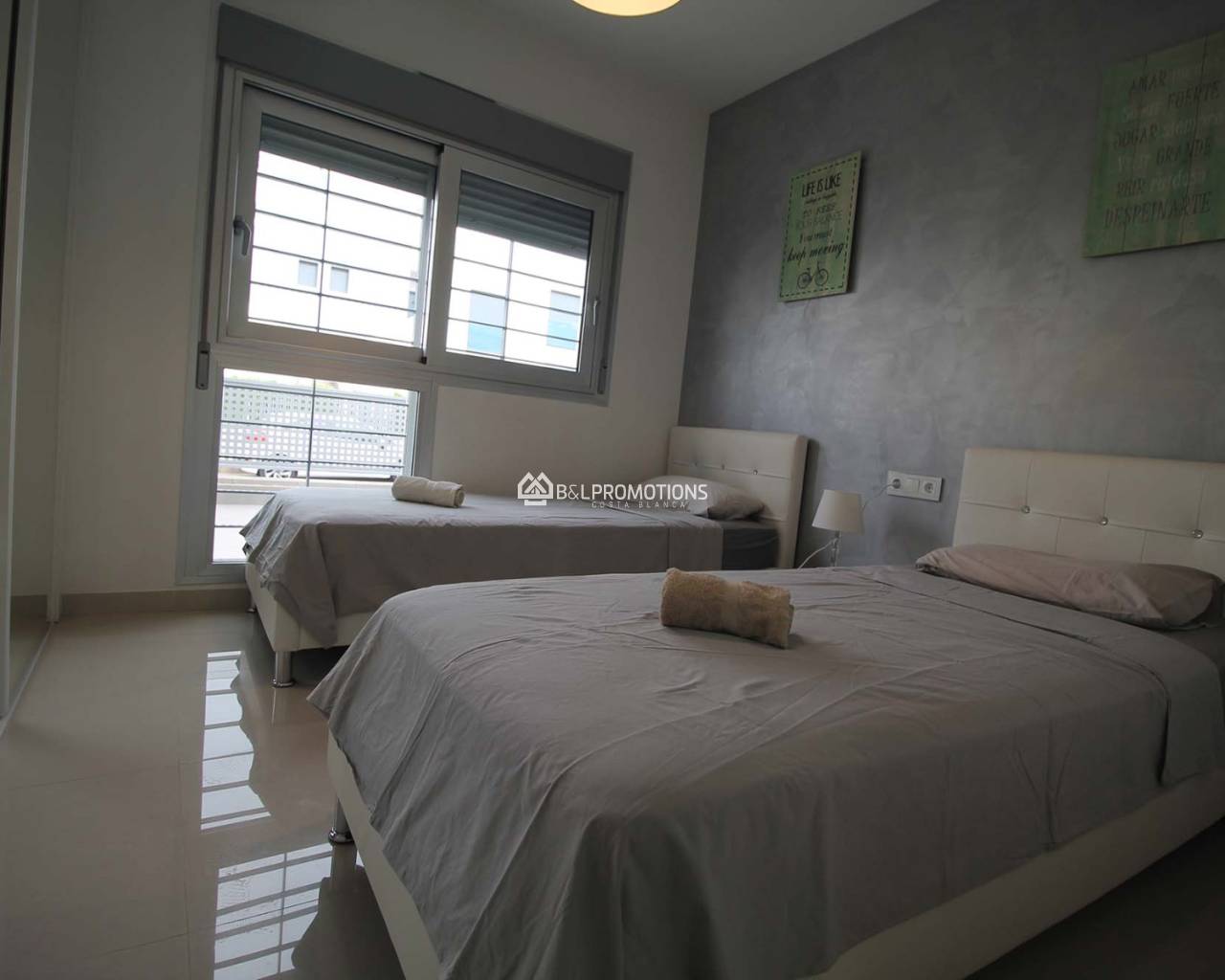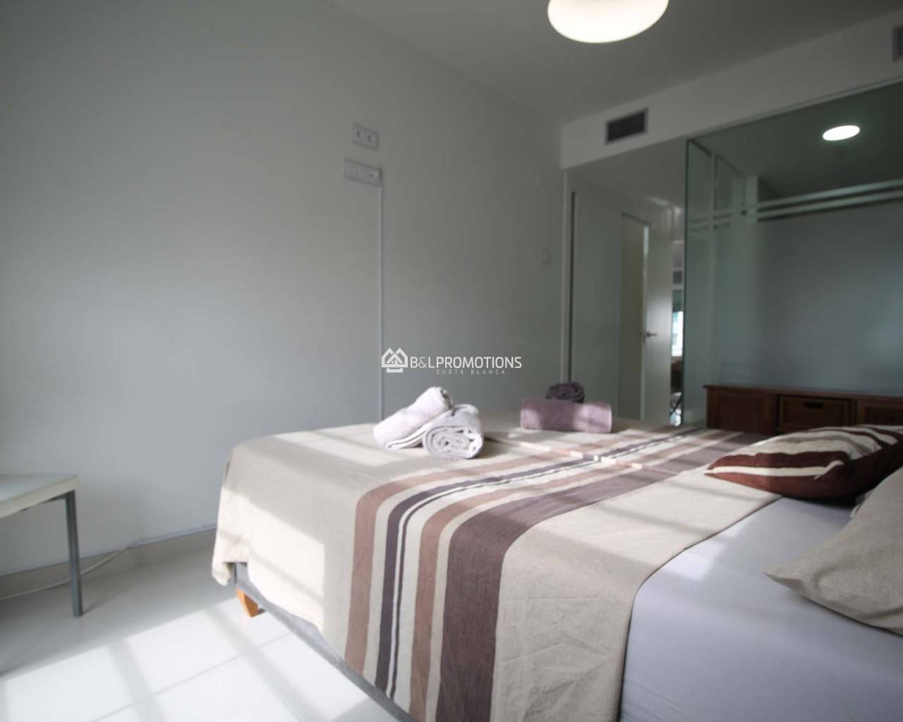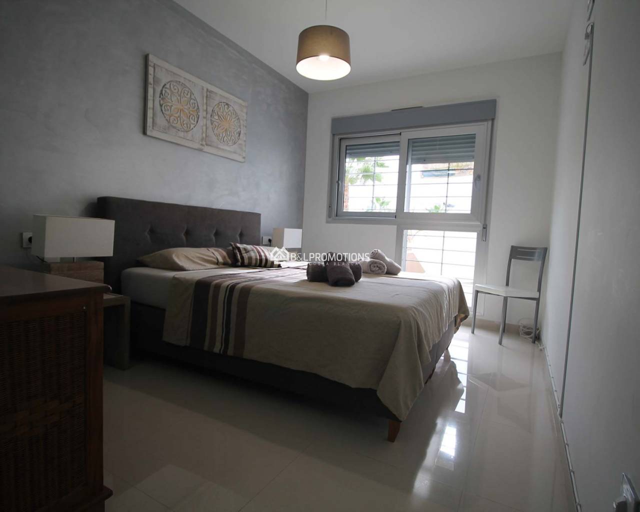 Die geräumige Wohnung hat eine große Terrasse von mehr als 40 m2 auf der Poolseite und 25 m2 an der Küche. Es hat ein geräumiges Wohnzimmer mit offener Küche und großen Schiebetüren auf beiden Seiten. Es gibt 2 Schlafzimmer, jedes mit eigenem Badezimmer. Die Wohnung wird inklusive Möbel, Klimaanlage und Küchengeräten übergeben.
