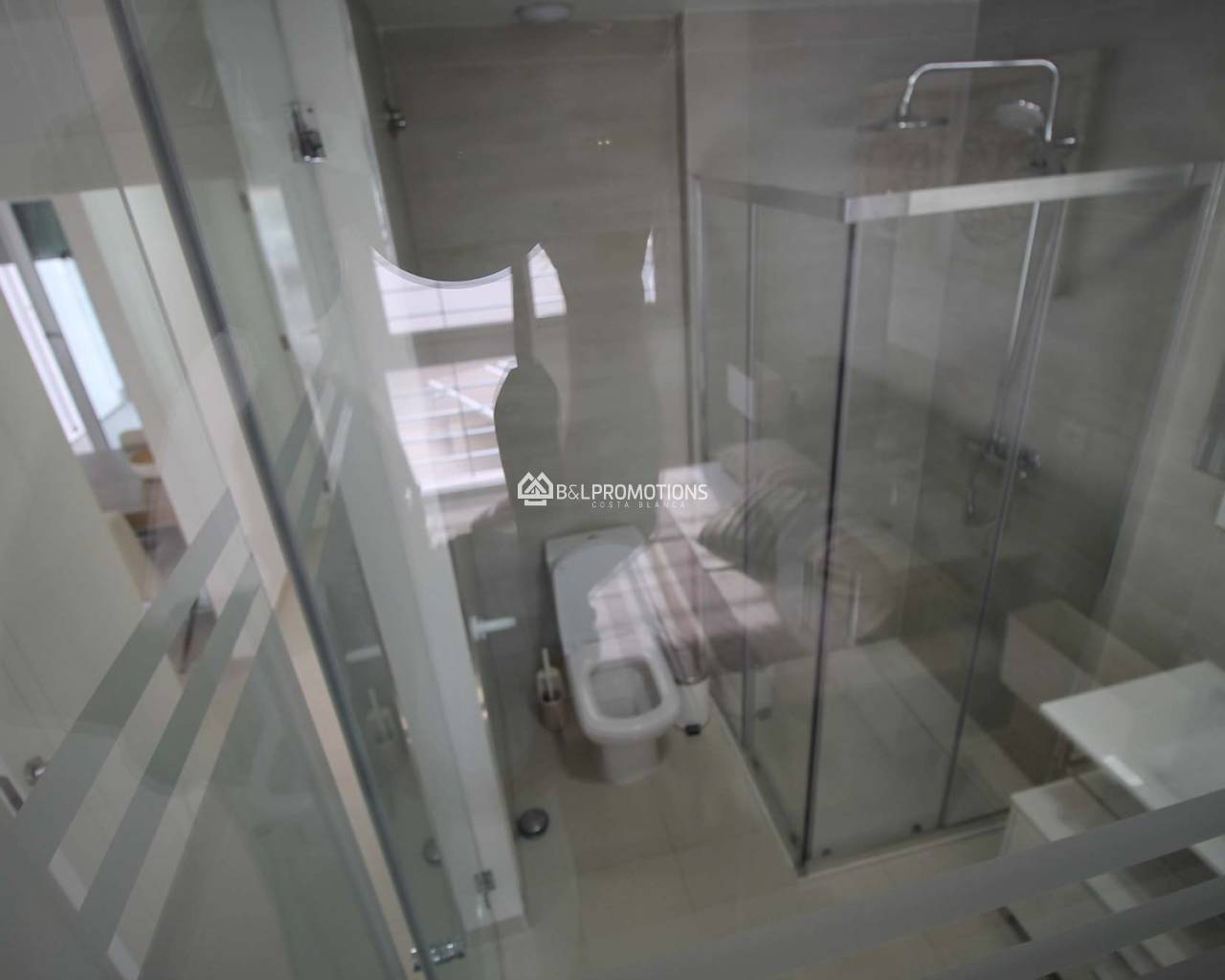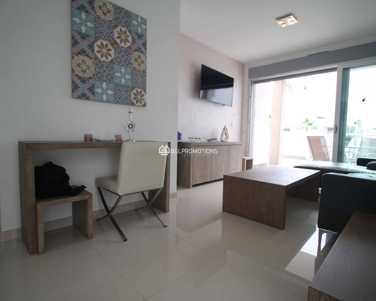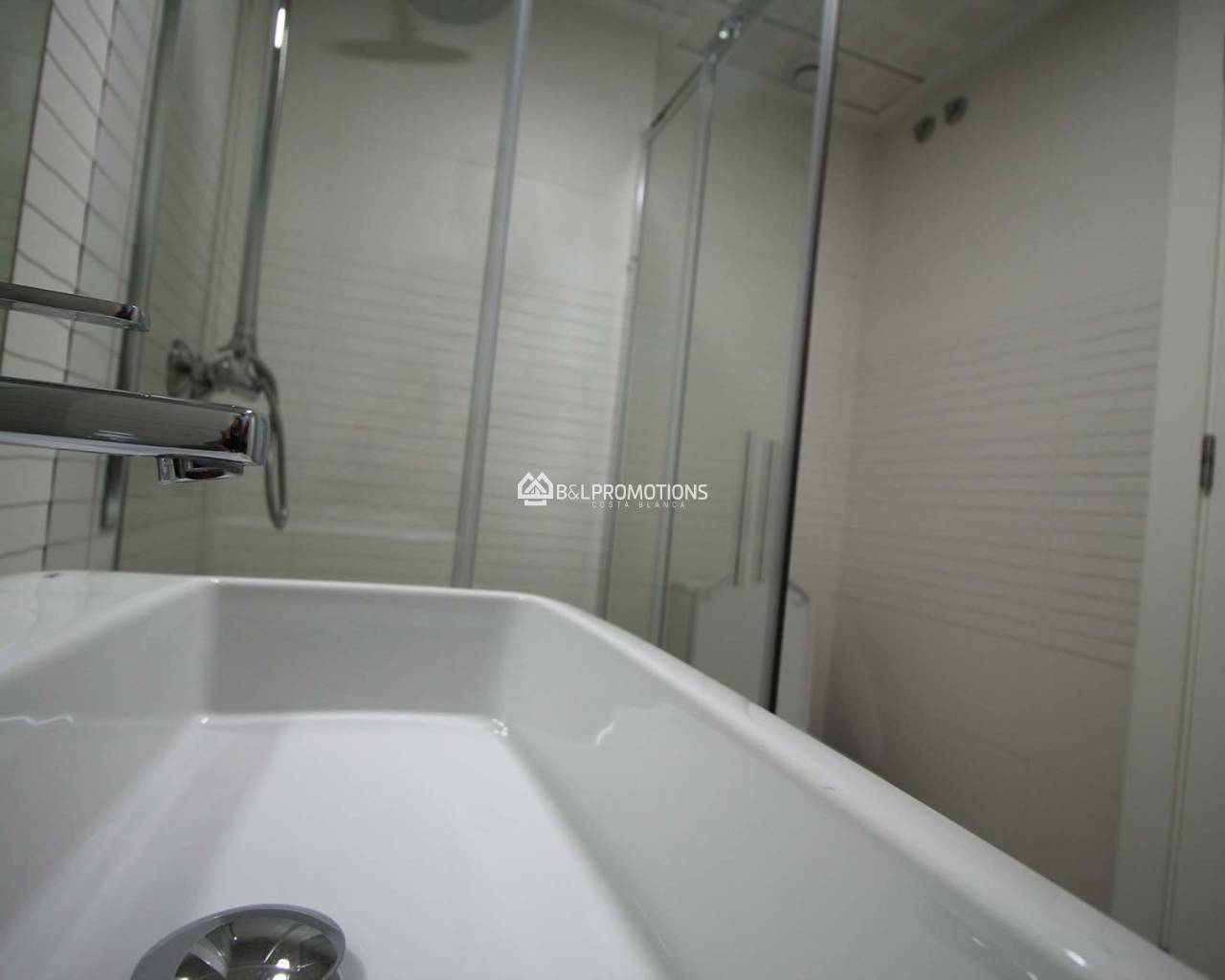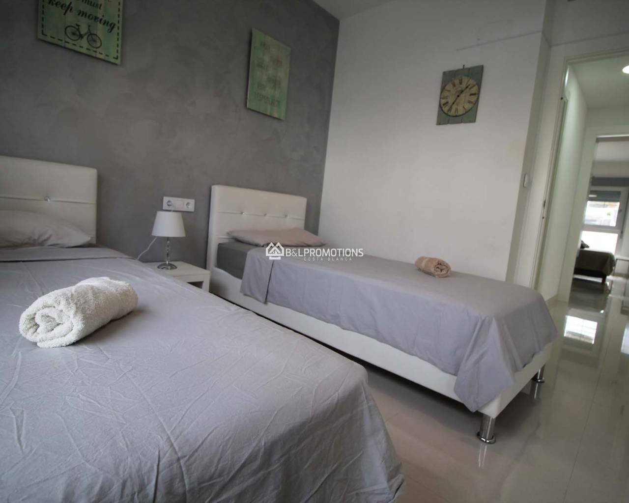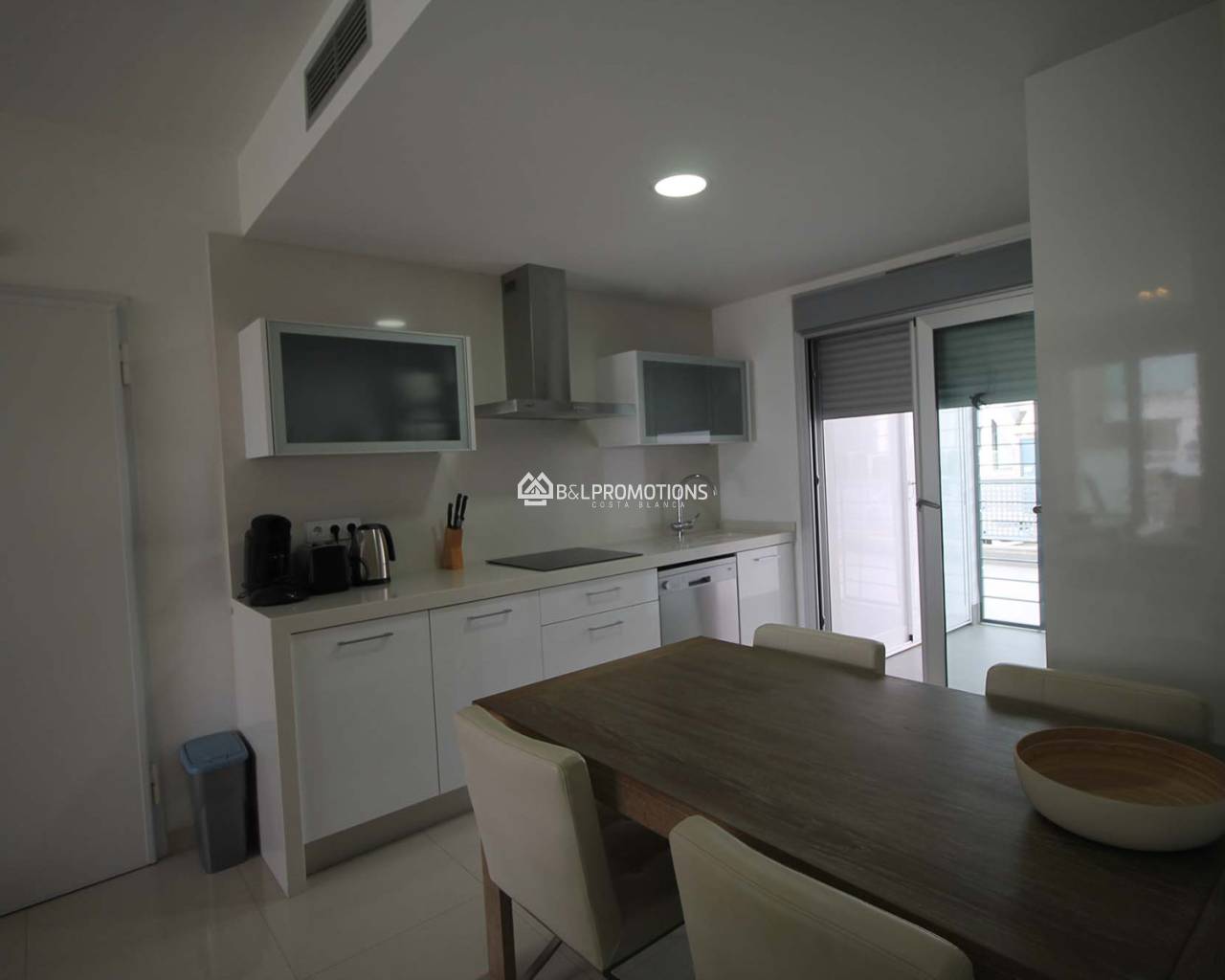 Die geräumige Wohnung hat eine große Terrasse von mehr als 40 m2 auf der Poolseite und 25 m2 an der Küche. Es hat ein geräumiges Wohnzimmer mit offener Küche und großen Schiebetüren auf beiden Seiten. Es gibt 2 Schlafzimmer, jedes mit eigenem Badezimmer. Die Wohnung wird inklusive Möbel, Klimaanlage und Küchengeräten übergeben.