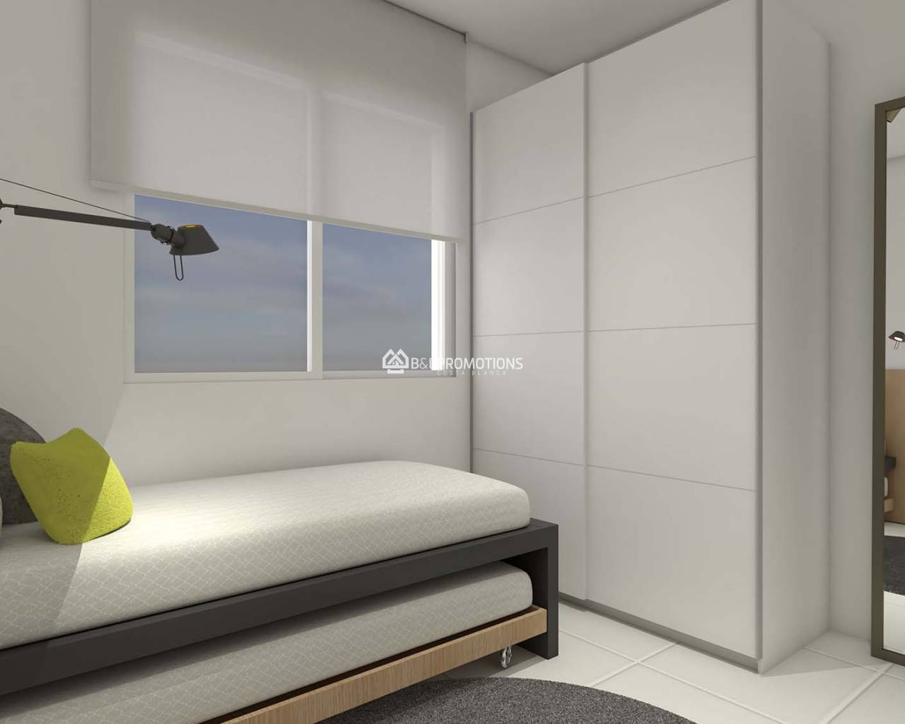 Es gibt Appartements mit 2 und 3 Schlafzimmern. Die Wohnungen im Erdgeschoss verfügen über einen schönen Garten und die Wohnungen im Obergeschoss über eine Terrasse und eine riesige Dachterrasse mit herrlichem Ausblick.