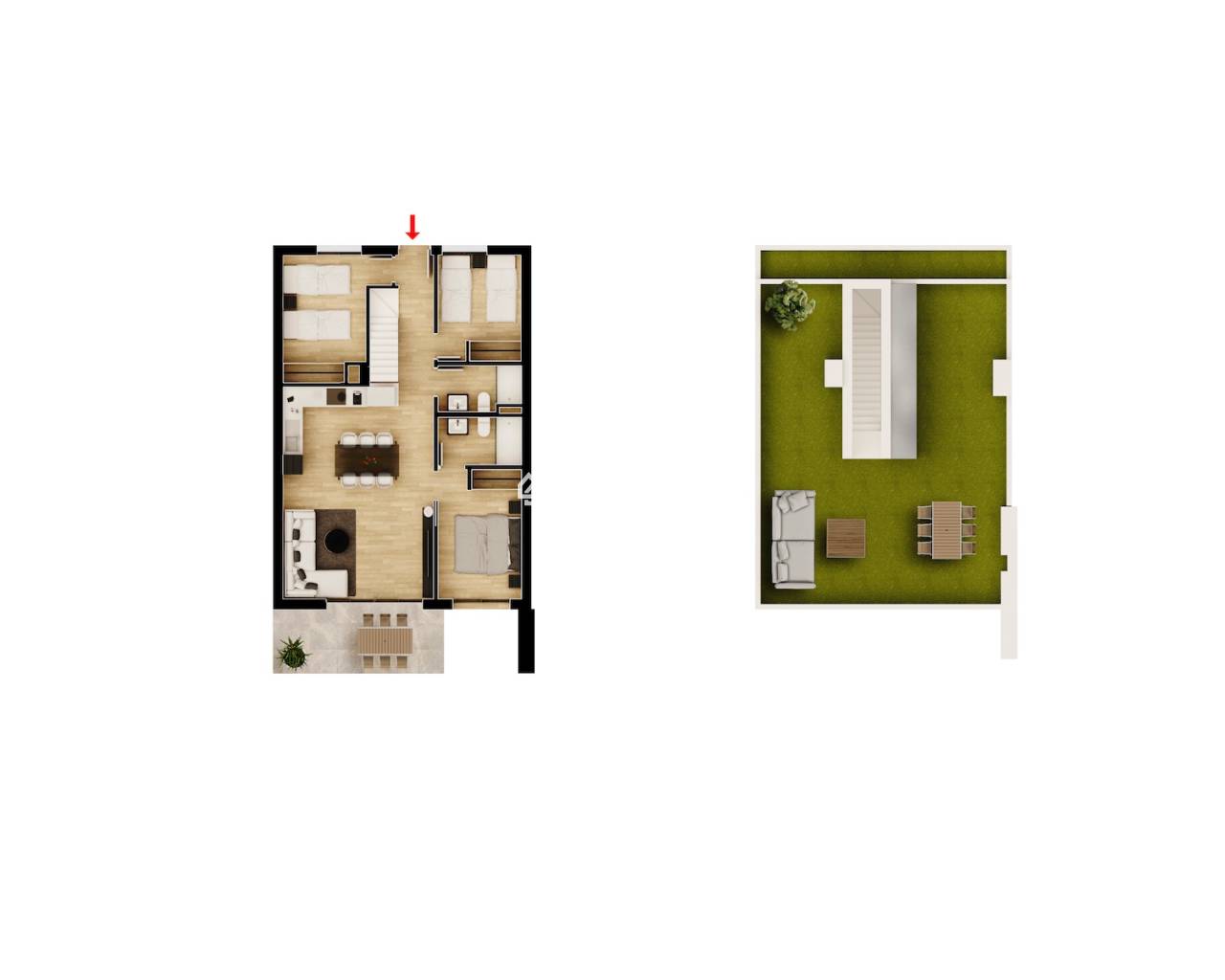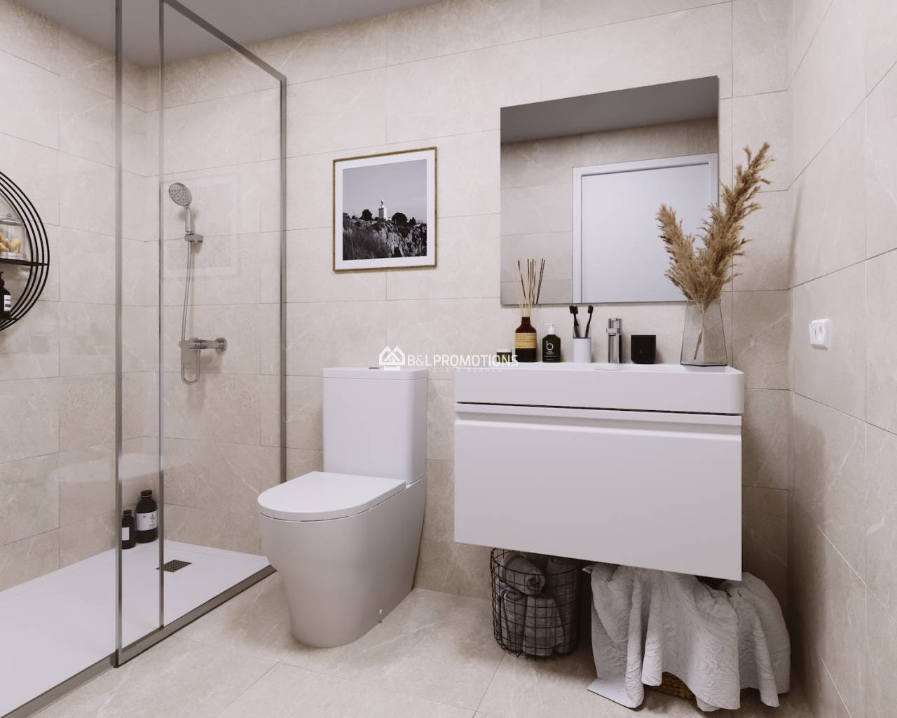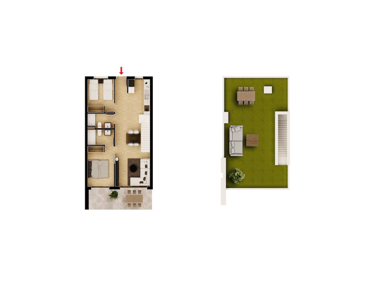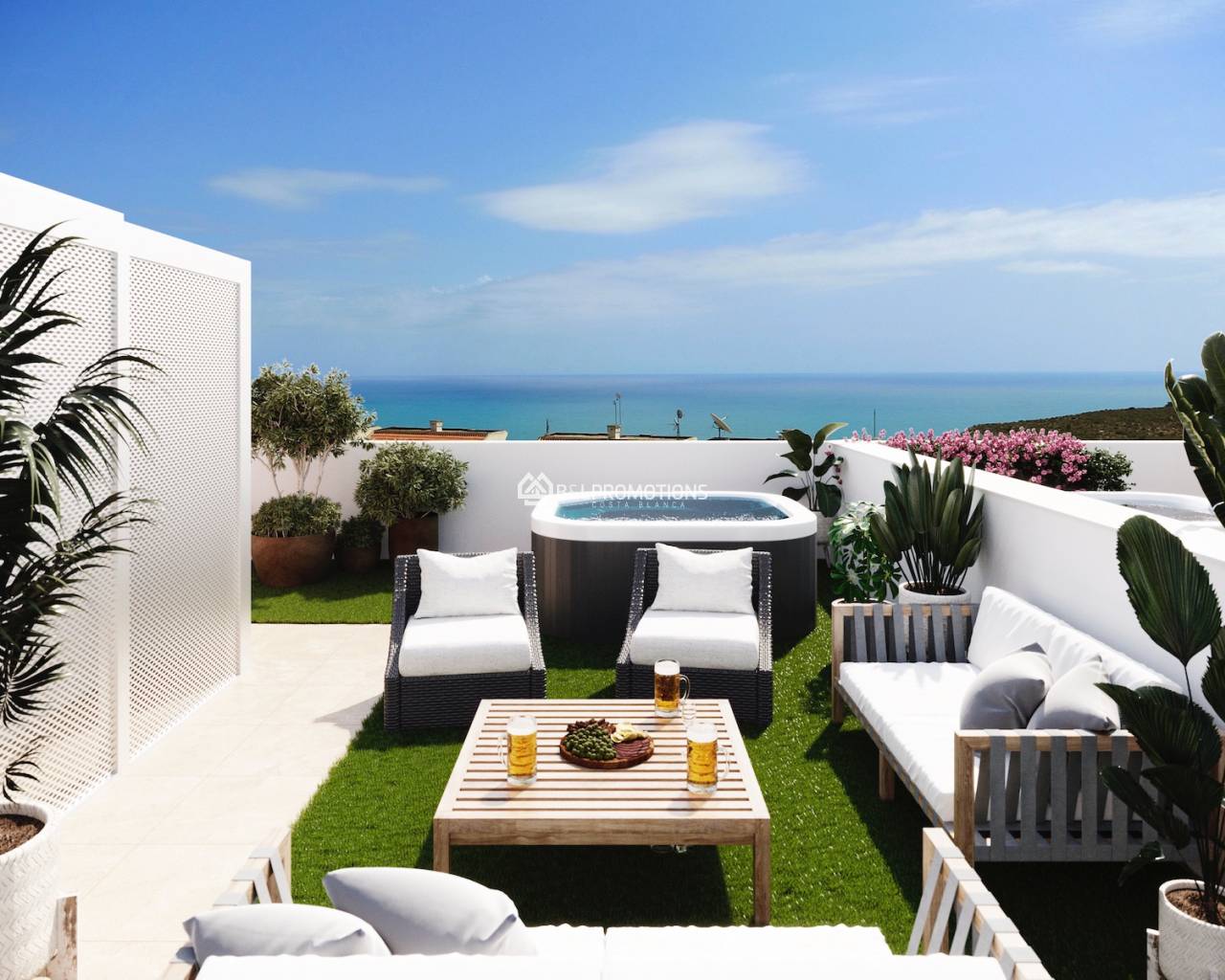 Diese Penthäuser verfügen über 2 Schlafzimmer, 2 Bäder, ein geräumiges Wohnzimmer und eine offene Küche sowie einen Balkon und eine Dachterrasse mit herrlichem Blick auf das Mittelmeer.