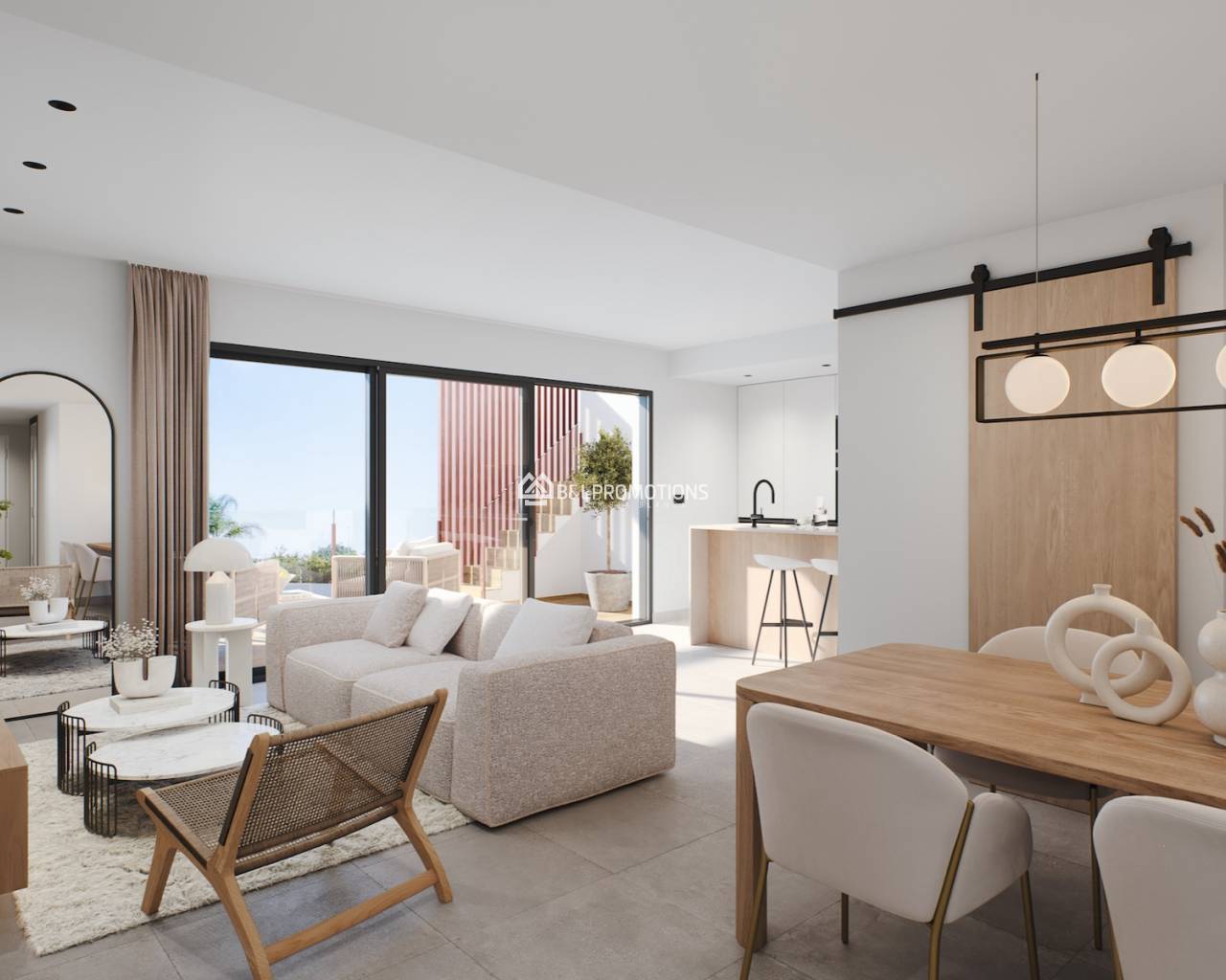 Die Wohnungen sind um den Pool herum gebaut und verfügen über 2 Schlafzimmer, 2 Bäder, ein schönes Wohnzimmer mit offener Küche und eine große Terrasse.