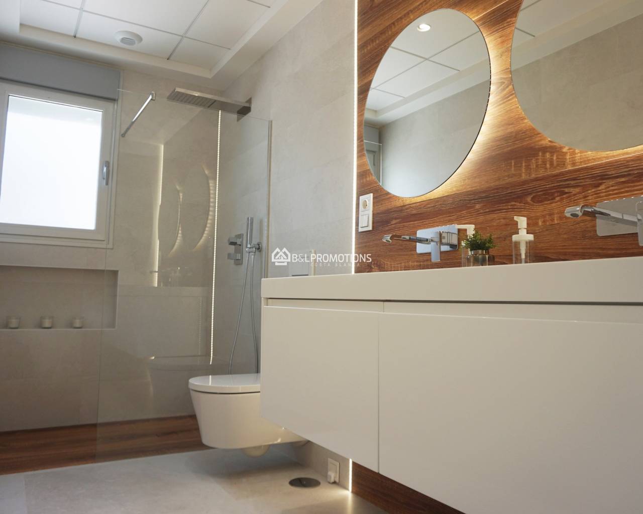 Die Villen sind auf einem Hügel gebaut, von dem aus man einen sehr schönen Blick über die Gegend hat. Die Villen selbst wurden mit den besten Materialien gebaut und sind sehr luxuriös ausgestattet. Zum Beispiel gibt es 4 Schlafzimmer, 4 Bäder und ein großes Wohnzimmer mit offener Küche. Es gibt auch einen großen Unterbau für die Garage und ein weiteres Zimmer mit Bad. Es gibt auch einen Aufzug. Außerdem gibt es eine große Dachterrasse mit Bar und Außenküche. Das Haus ist mit Klimaanlage, Fußbodenheizung und allen elektrischen Geräten ausgestattet. Top Qualität in einer Top Lage!!!