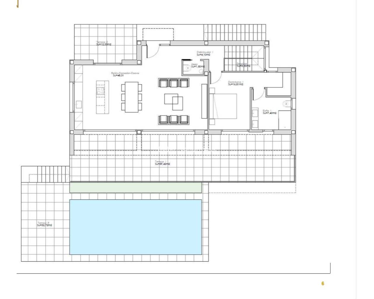Großer privater Pool und große Terrasse mit fertigem Garten.
