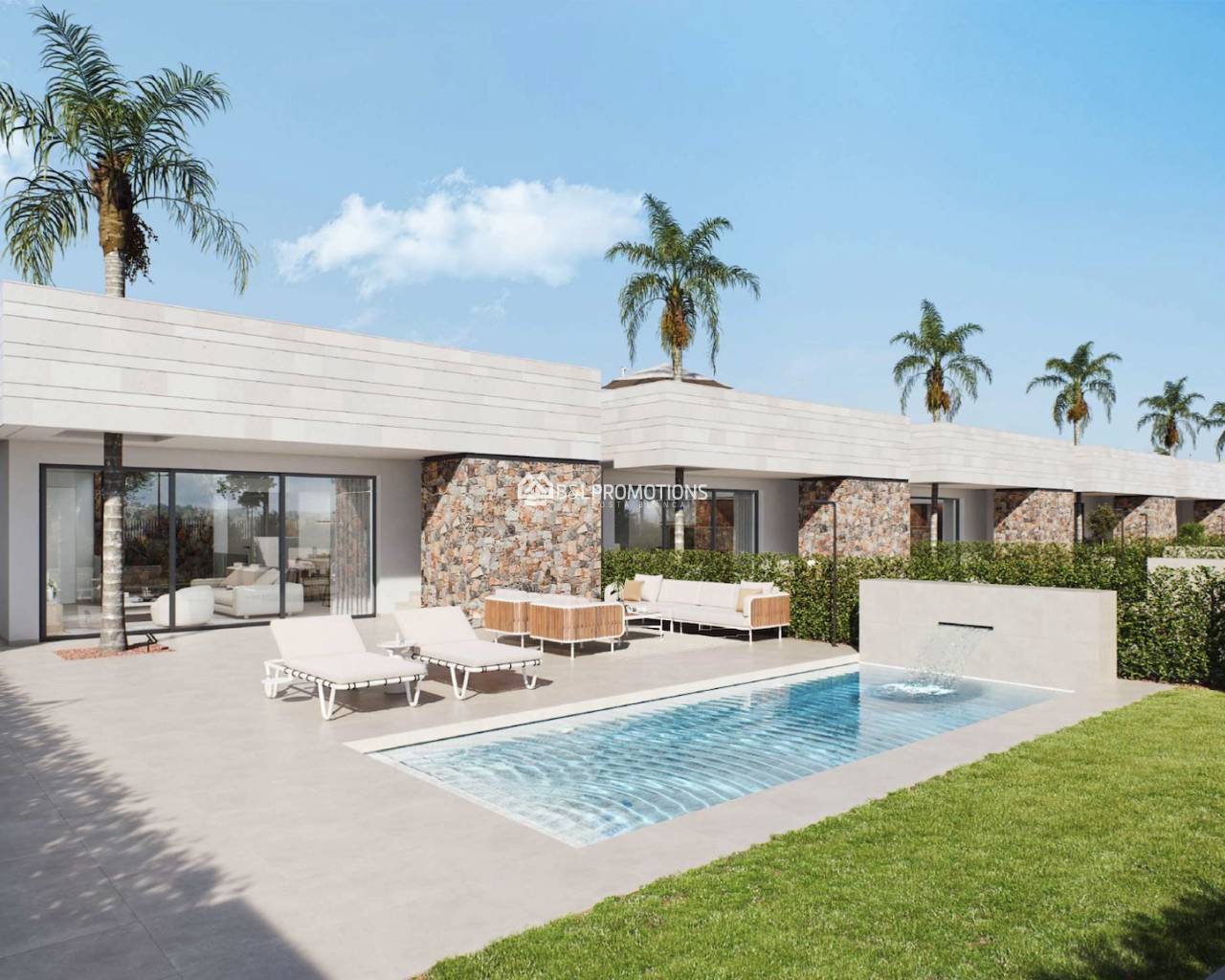 Diese Villen werden auf einer Ebene gebaut und haben 3 Schlafzimmer, 2 Bäder, ein schönes Wohnzimmer mit offener Küche und eine schöne Terrasse mit eigenem Pool.