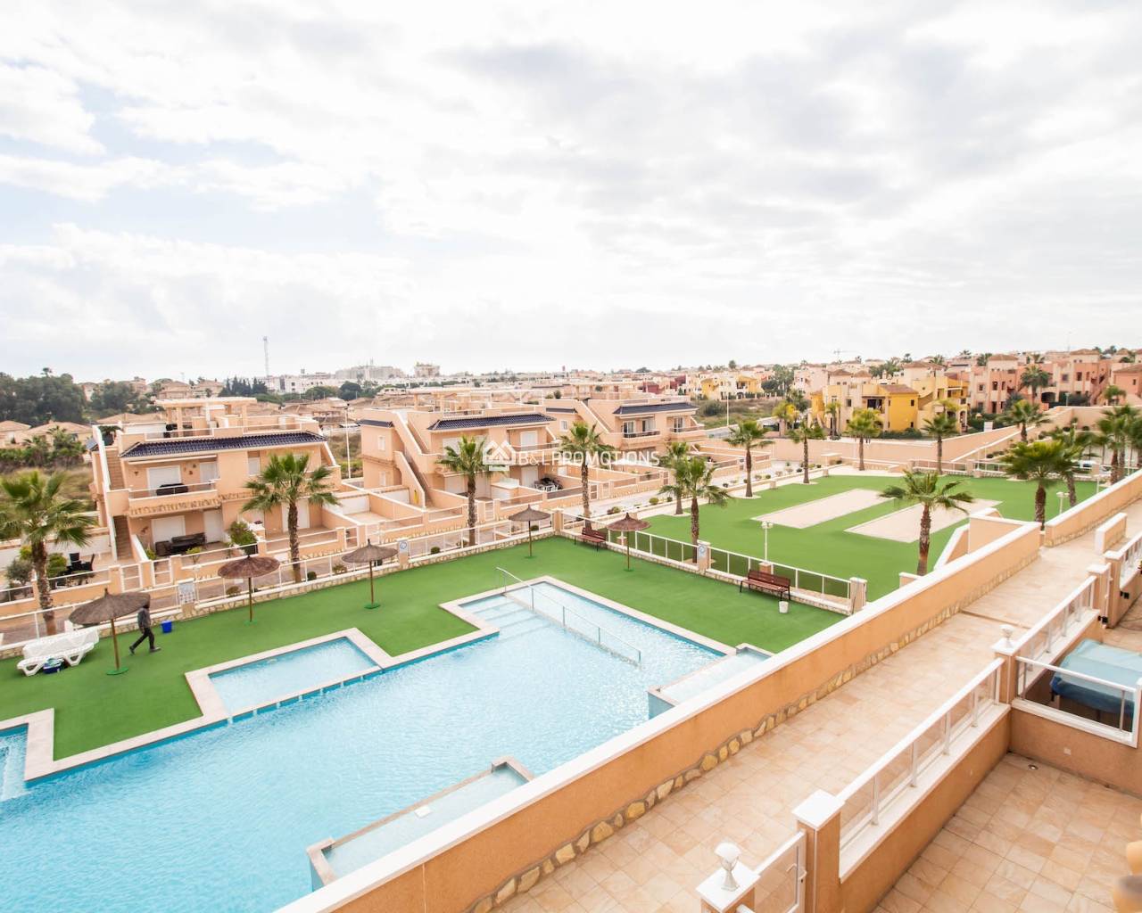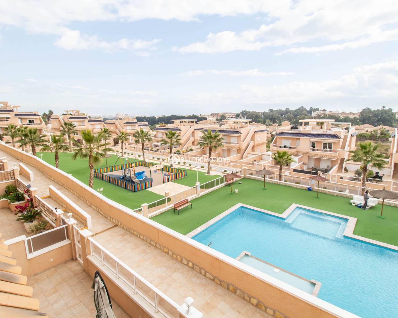 Es gibt einen schönen Gemeinschaftsgarten mit Kinderspielplatz, 2 schöne Swimmingpools, einer davon mit Spa und Whirlpool und einen Fitnessraum.