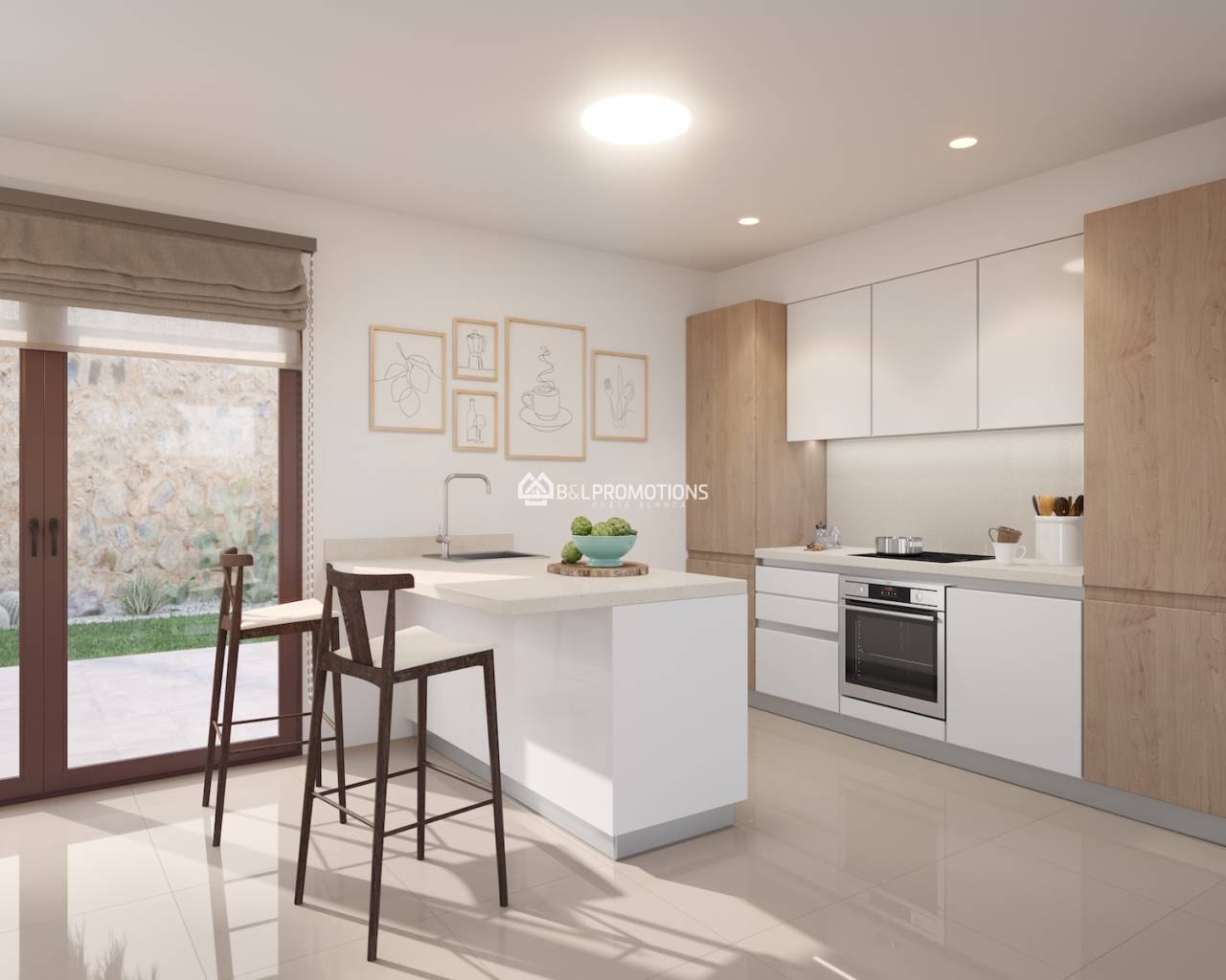 Die stilvoll gestalteten Häuser verfügen über 2 Schlafzimmer, 2 Badezimmer, ein helles Wohnzimmer mit offener Küche, eine schöne Terrasse und einen großzügigen privaten Garten – perfekt, um das mediterrane Klima zu genießen.