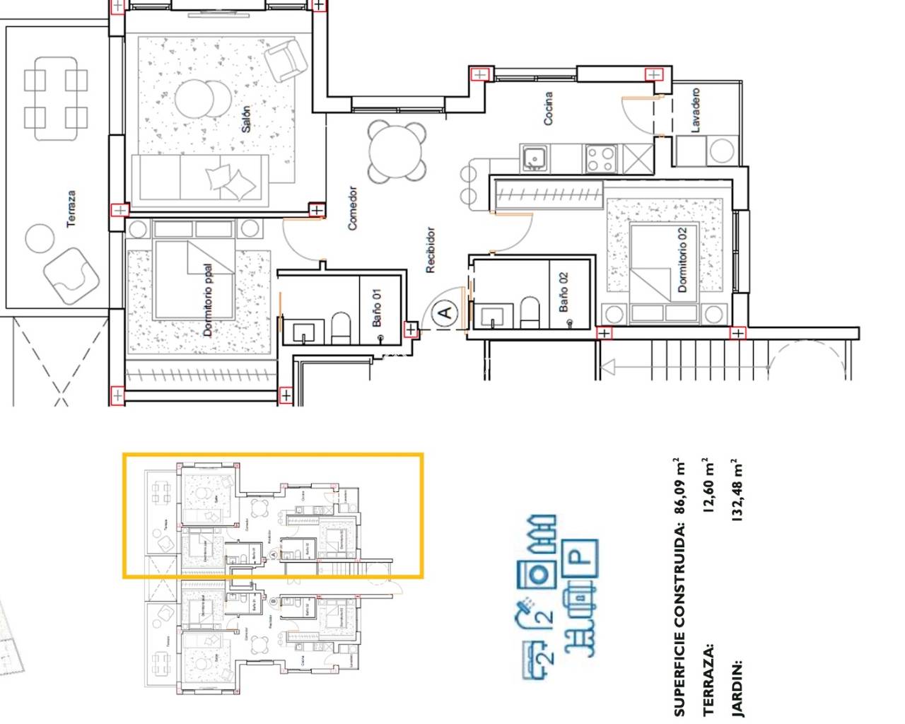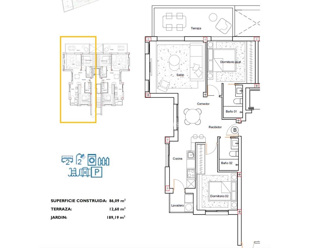 Die Wohnungen haben 2 Schlafzimmer, 2 Bäder, ein schönes Wohnzimmer mit offener Küche und eine schöne Terrasse oder Balkon mit schöner Aussicht.