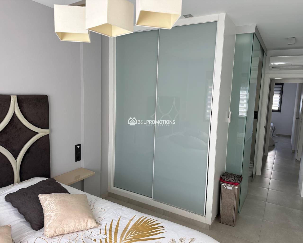 Zwei Schlafzimmer, 2 Bäder, davon 1 en suite, schöne offene Küche mit allen Geräten und ein geräumiges Wohnzimmer mit einer zusätzlichen Veranda und einer großen Terrasse mit schönem Blick auf den Pool.
