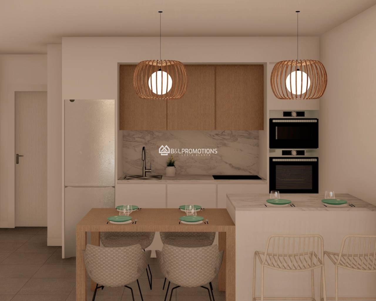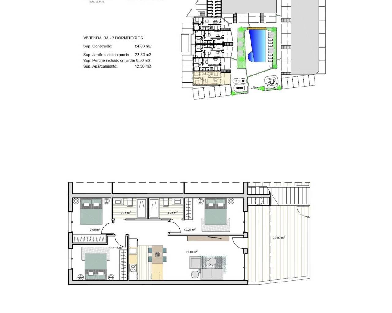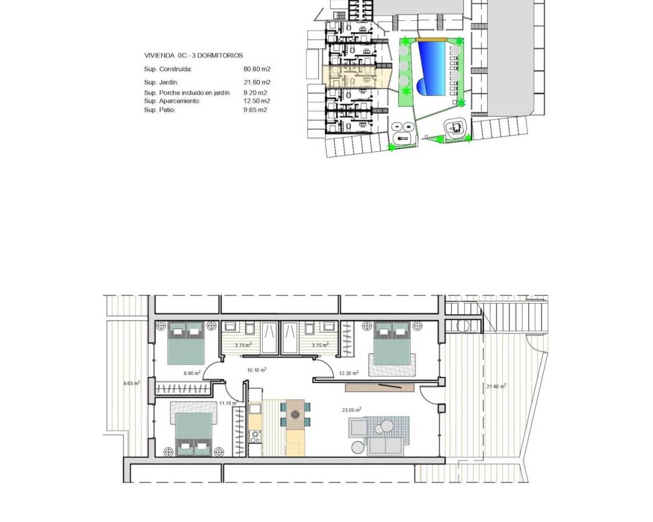 Alle Wohnungen befinden sich im Erdgeschoss und bieten 3 Schlafzimmer, 2 Badezimmer, ein helles, geräumiges Wohnzimmer mit offener Küche sowie eine großzügige Terrasse – perfekt, um das mediterrane Lebensgefühl zu genießen. Ein privater Stellplatz ist ebenfalls inbegriffen.