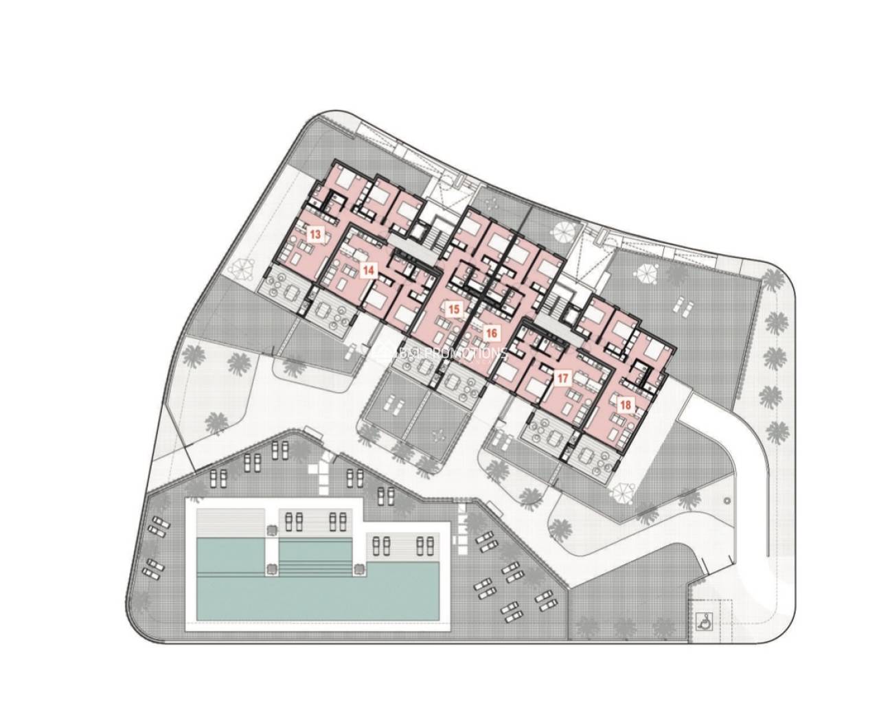 Die Wohnungen sind sehr modern und luxuriös eingerichtet und natürlich gibt es einen Gemeinschaftspool bei den Wohnungen selbst.