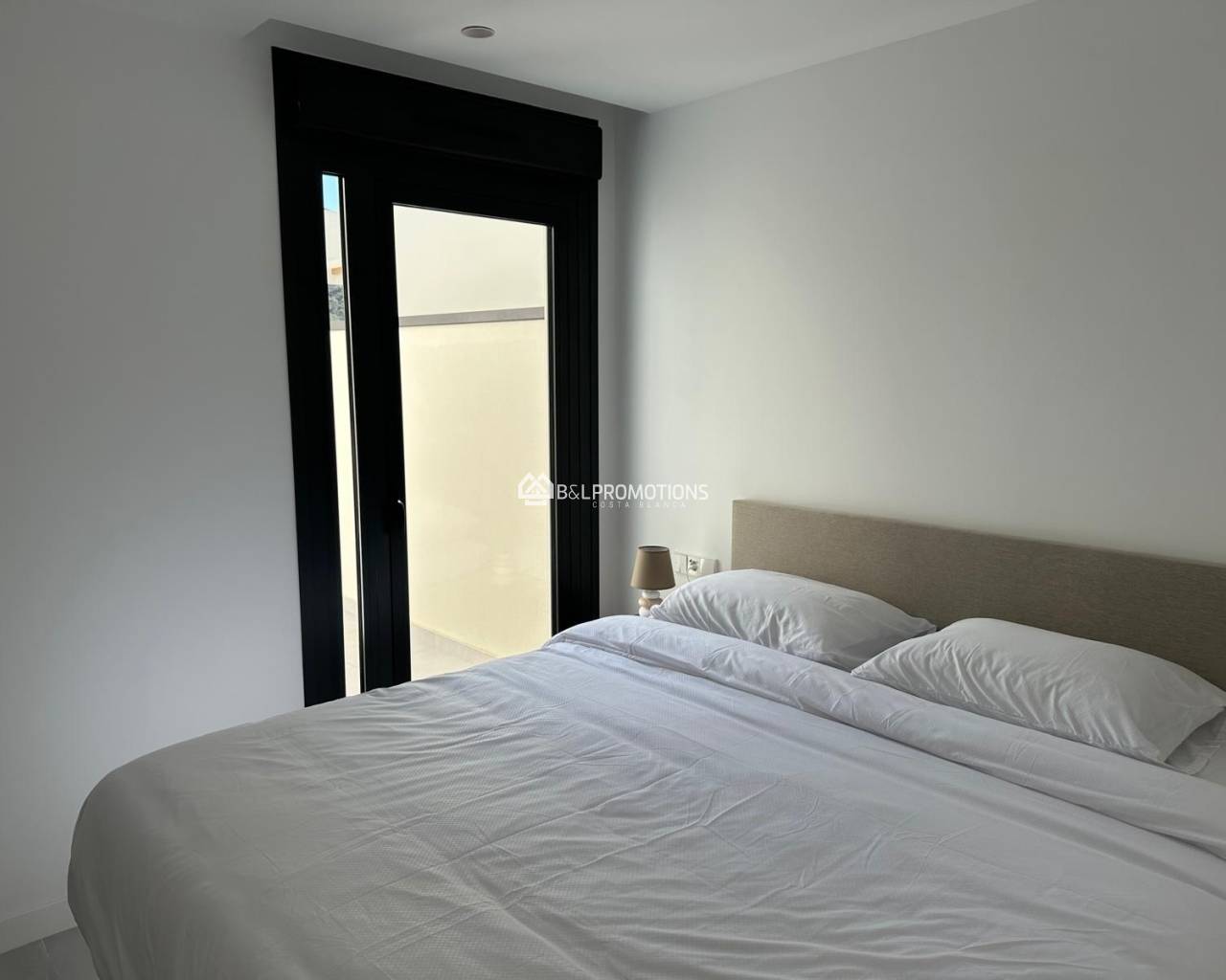 Im Inneren erwartet Sie ein großzügiges, lichtdurchflutetes Wohnzimmer mit großen Schiebetüren, die viel natürliches Licht hereinlassen. Die offene Küche fügt sich harmonisch in den Wohnbereich ein, und es gibt einen praktischen Hauswirtschaftsraum mit Waschmaschine, Trockner und Boiler. Die Wohnung verfügt über zwei komfortable Schlafzimmer und zwei moderne Badezimmer.