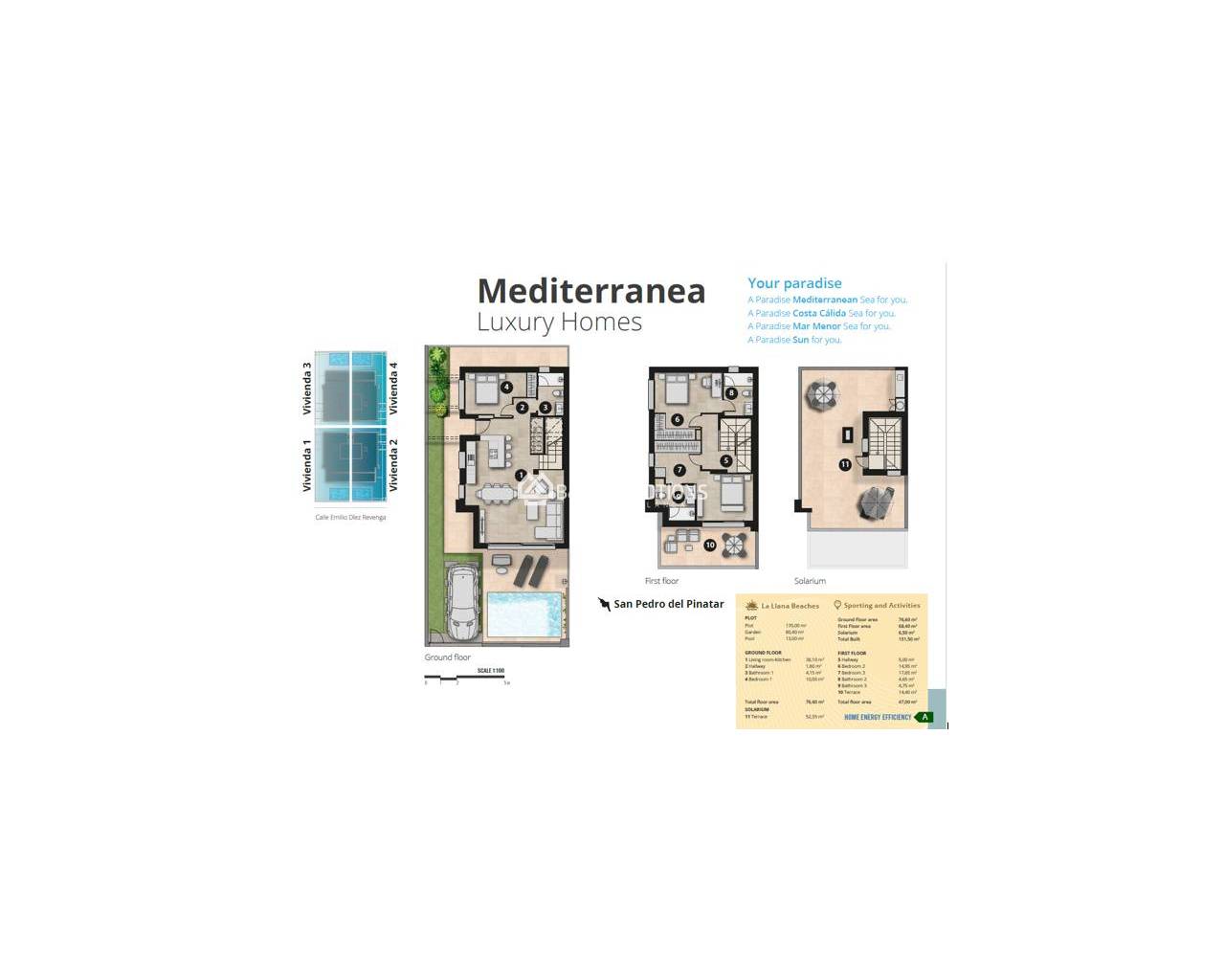 Entdecken Sie dieses exklusive Projekt mit 4 Doppelhaushälften, nur 2 Minuten vom Zentrum von San Pedro del Pinatar entfernt und in unmittelbarer Nähe zum ruhigen Wasser des Mar Menor. Hervorragend gelegen – nur 30 Minuten von Murcia und 40 Minuten von Alicante – ideal als Dauerwohnsitz oder Feriendomizil.