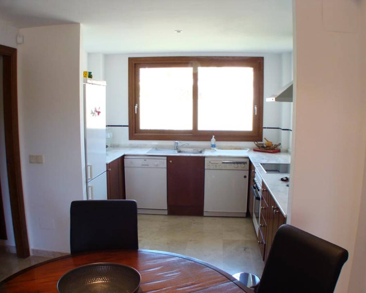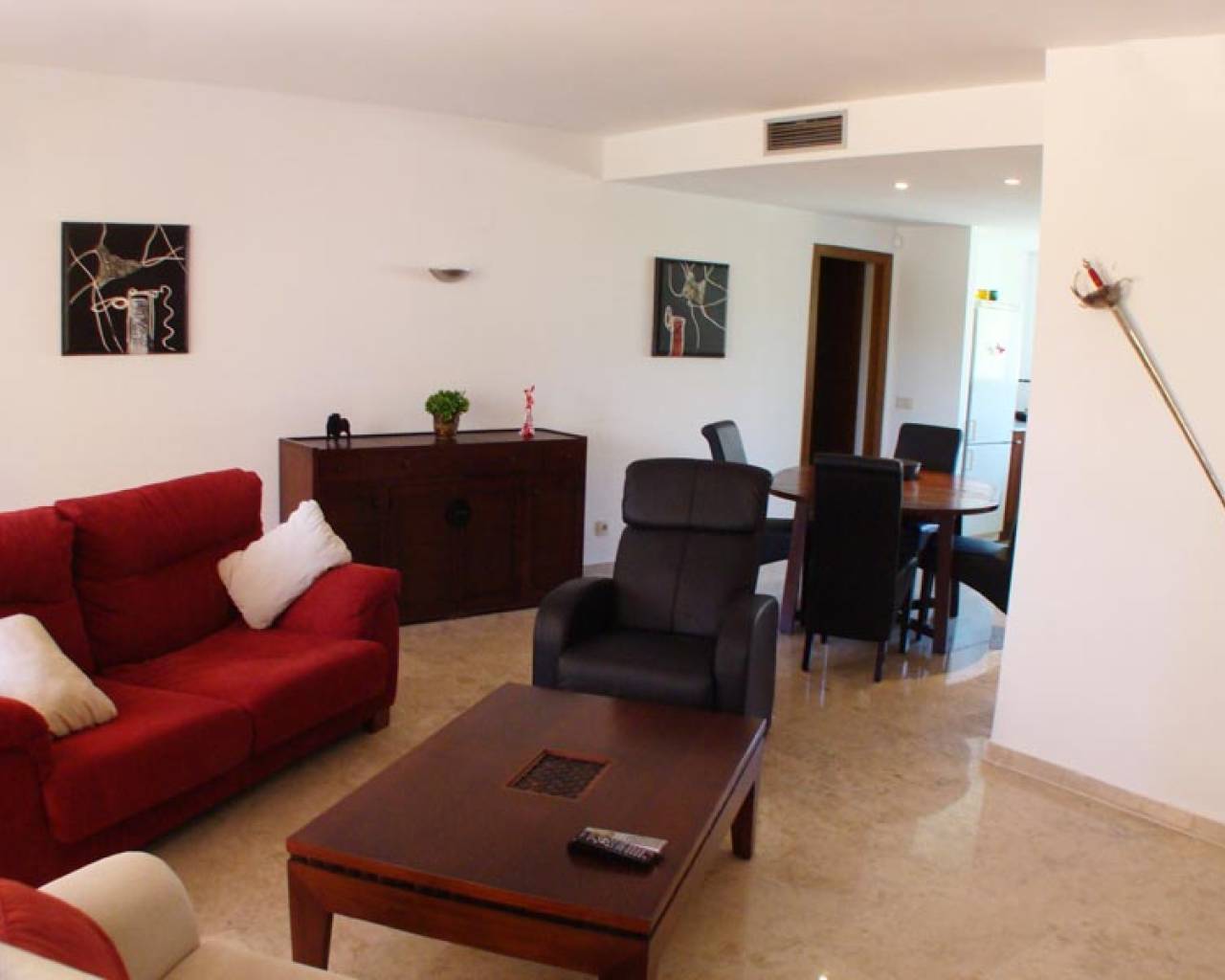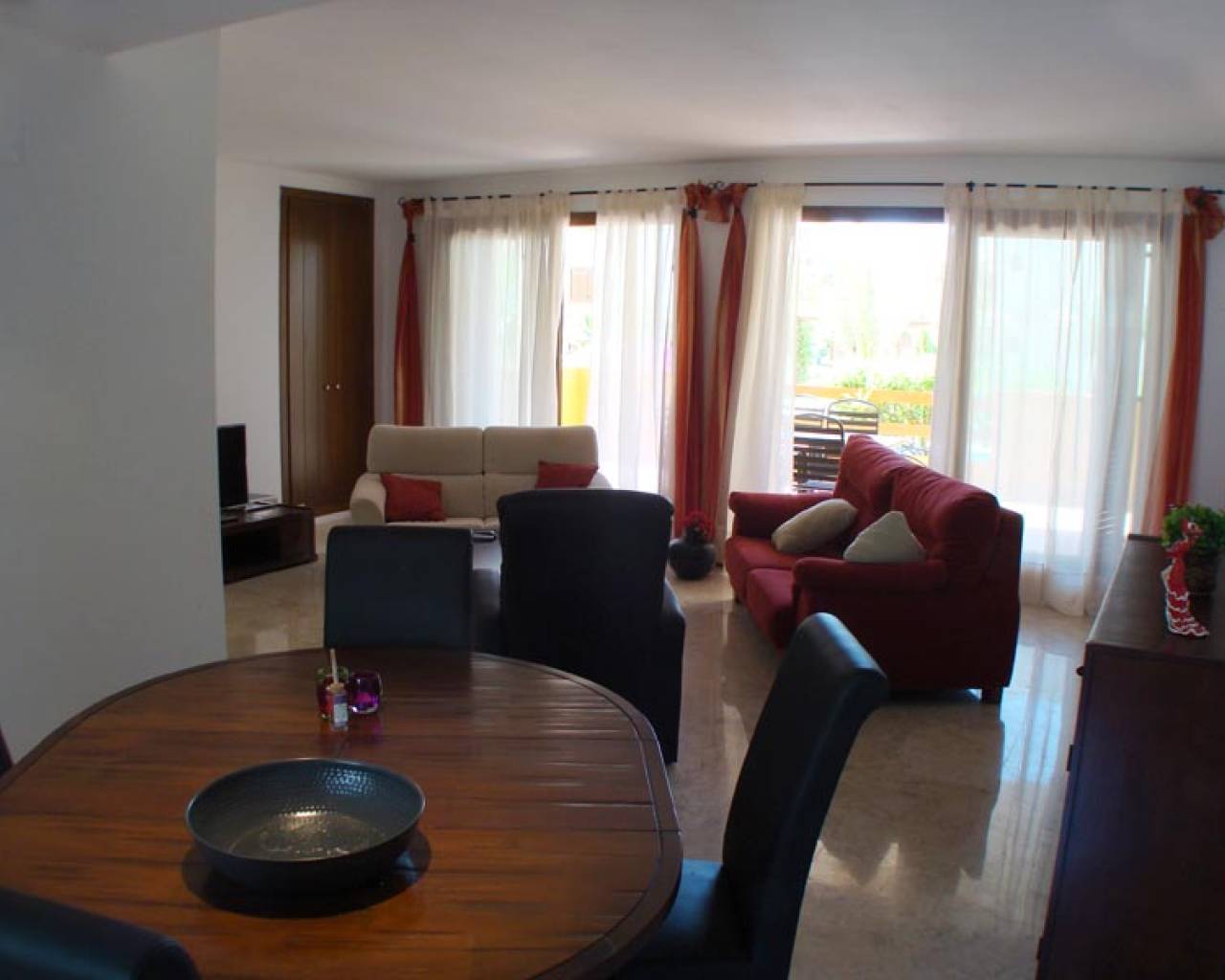 Die Wohnung verfügt über ein geräumiges Wohnzimmer mit offener Küche. Eine große Schiebetür öffnet sich auf die geräumige Terrasse mit Blick auf die Grünzonen und auf den Gemeinschaftspool. Es gibt 2 Schlafzimmer und 2 Badezimmer. Die Wohnung ist ausgerüstet mit Klimaanlage mit Wärmepumpe und Fußbodenheizung in den Bädern.