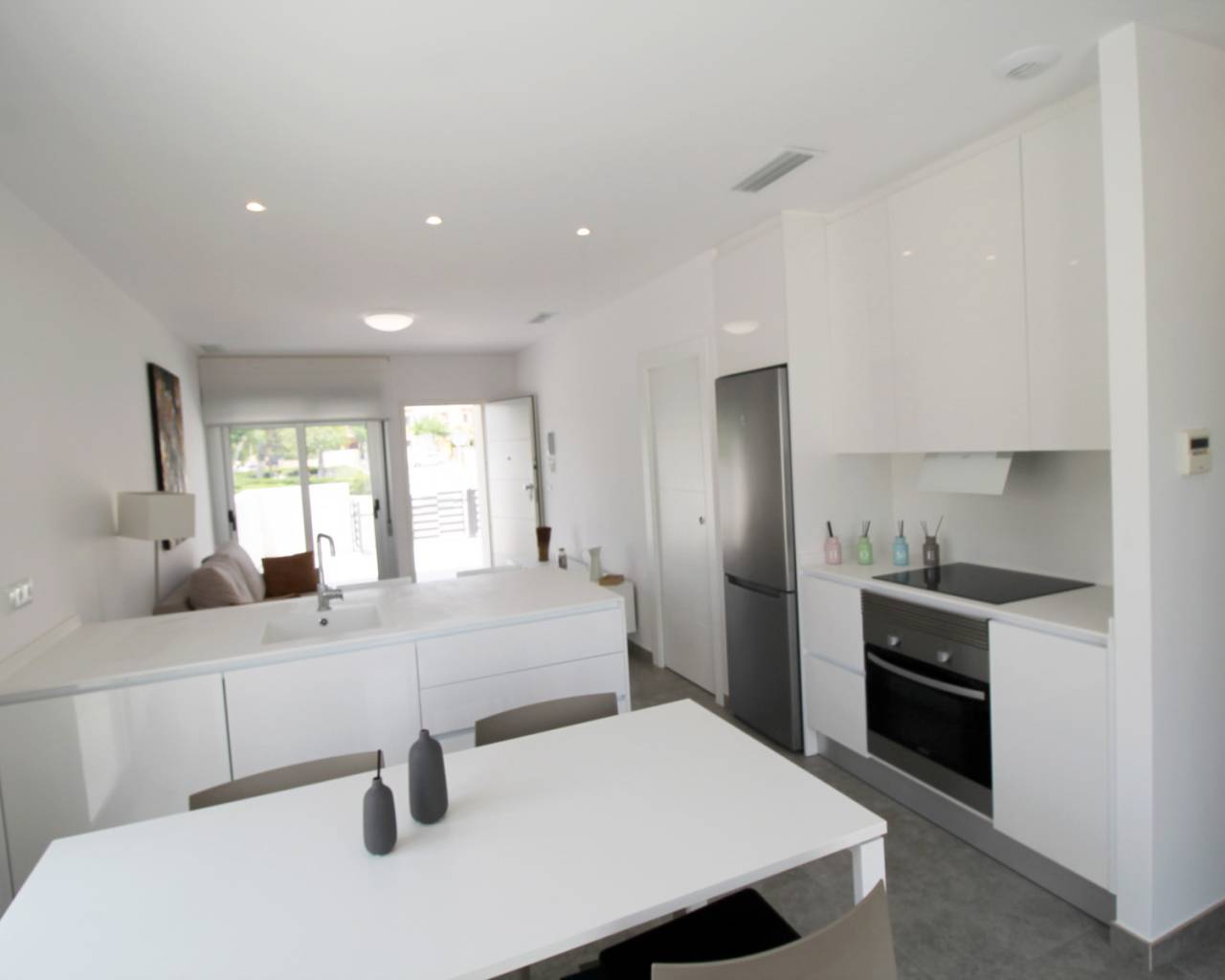 Small apartment complex overlooking the park and with direct access to the communal swimming pool very close to the town center.
