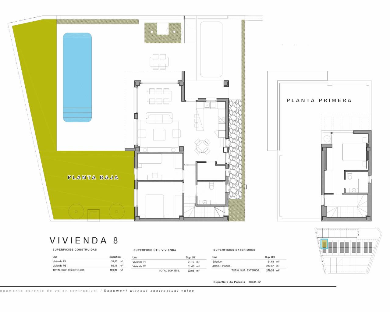 They have a spacious living room, an open kitchen, a utility room, 2 bedrooms and a large bathroom on the ground floor and a large en-suite bedroom on the floor. In addition, there is a huge sun terrace. The houses are on a spacious plot.