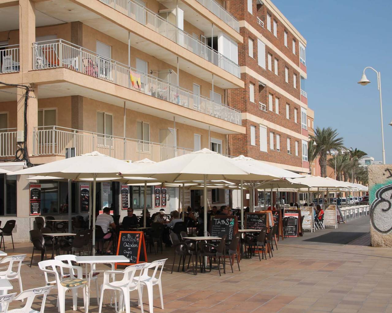 Right next to the buildings you will enter a huge nature reserve known as the Humedales de Elche. You will find a nice shopping center at a kilometer distance and one of the most beautiful beaches of the Costa Blanca at only 5 km.