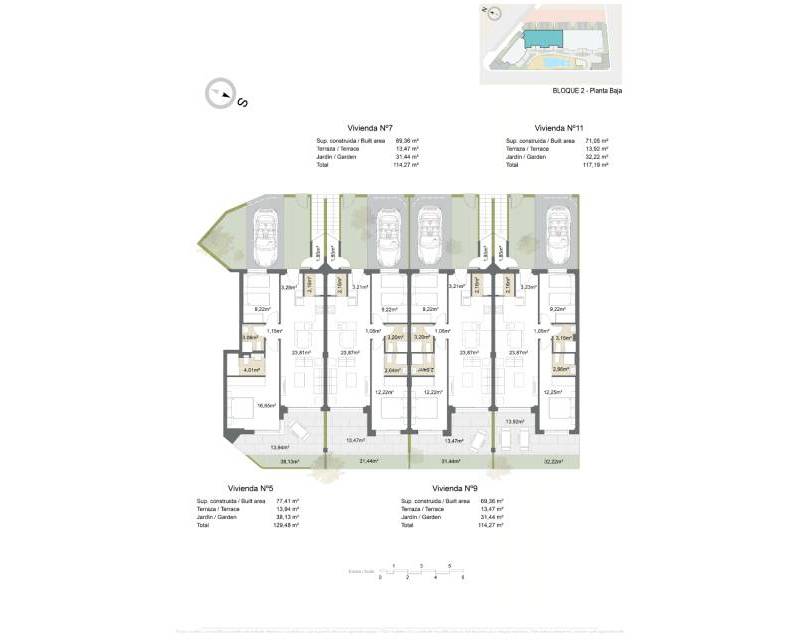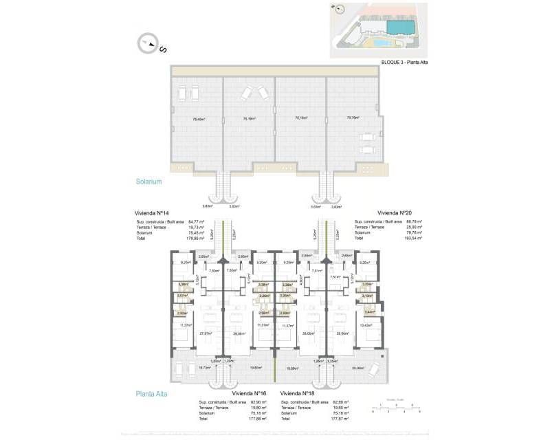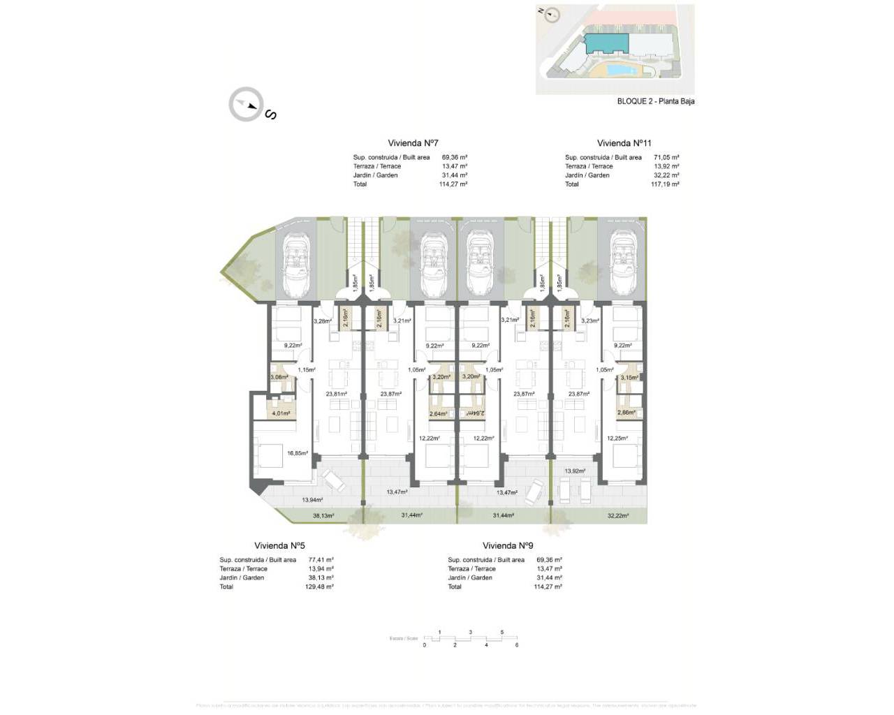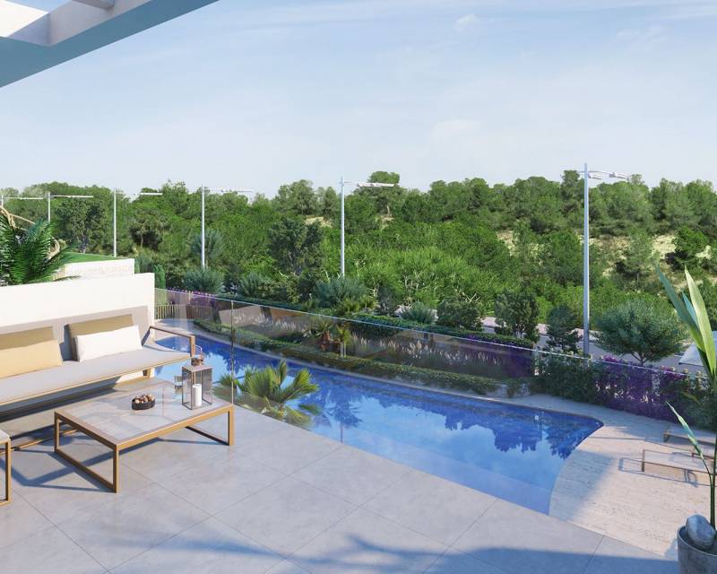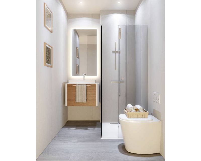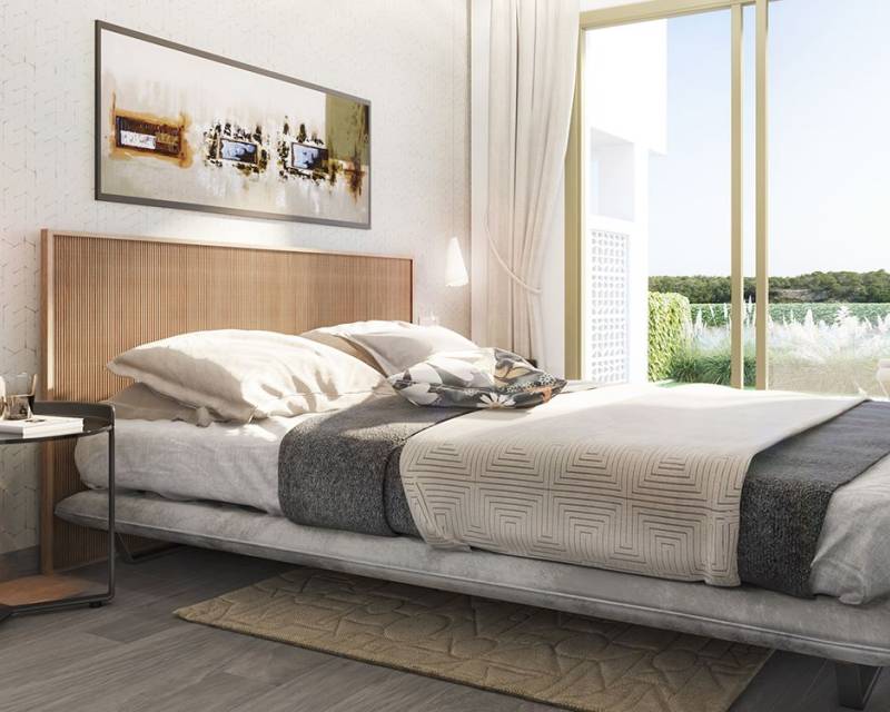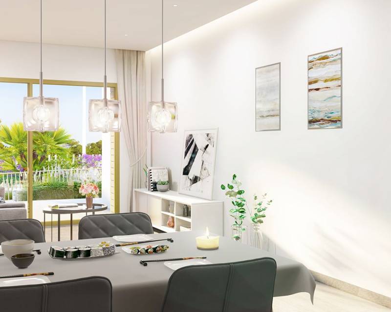 A small complex of 20 houses, swimming pool and fitness, right along the park in the riverbed and within walking distance to the main street of Pilar de la Horadada. This is the last plot with this fantastic location. At just over 1 km you will find a huge sports complex with an (almost) Olympic indoor swimming pool, tennis courts, padel courts, a climbing wall, running track, etc. The beautiful beach is less than 3 km away. The complex is made with a lot of atmosphere and with high quality. 7 apartments have 2 bedrooms and 2 bathrooms and 13 apartments have 3 bedrooms and 2 bathrooms.