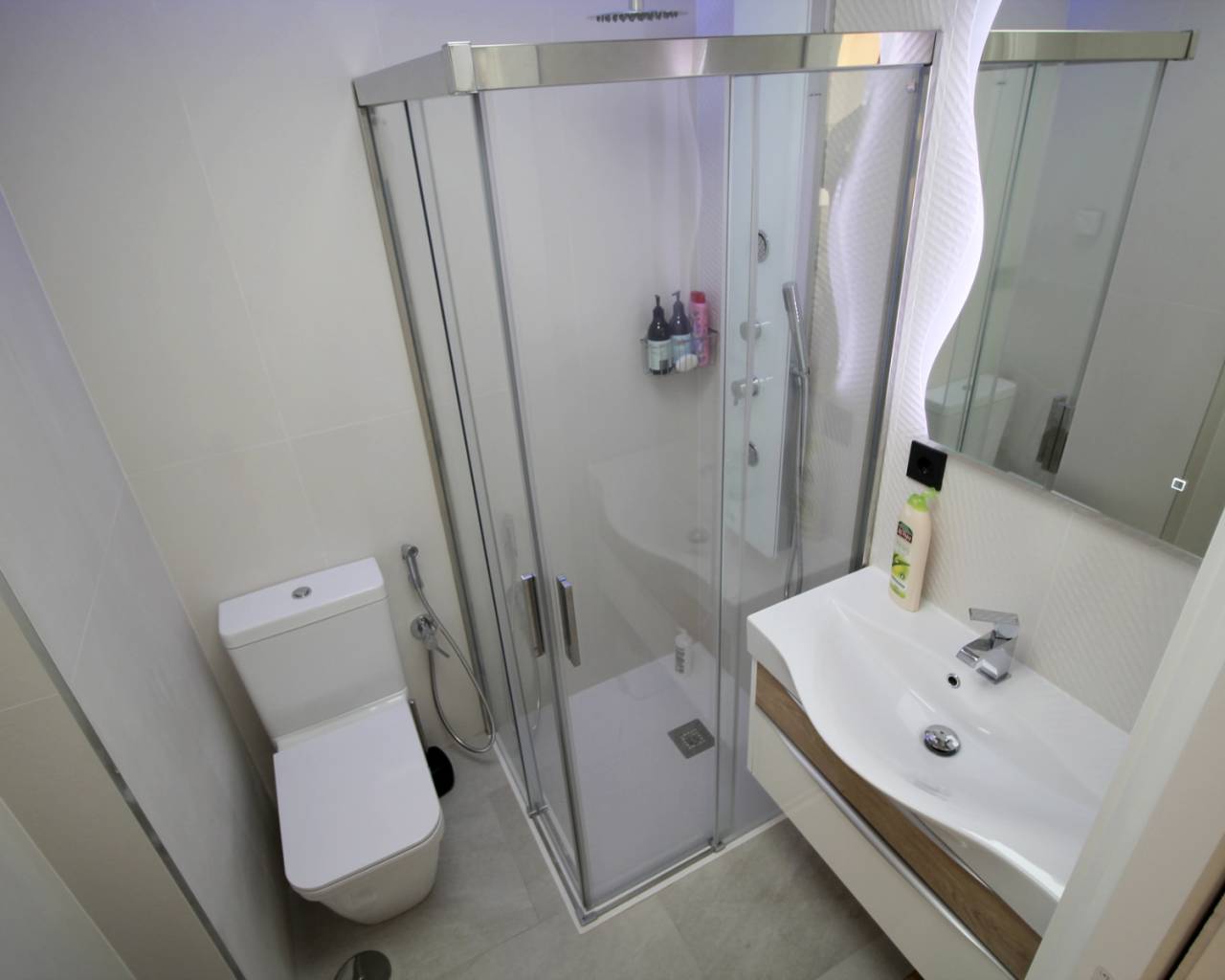 This apartment boasts a modern design with luxurious finishes and is located in a high-quality residential complex with impeccable facilities. The location is excellent, with several restaurants and a large supermarket within walking distance, as well as a lively entertainment center just 700 meters away. The beach is about 3 km away, and the center of Torrevieja is only 5 km from the complex.