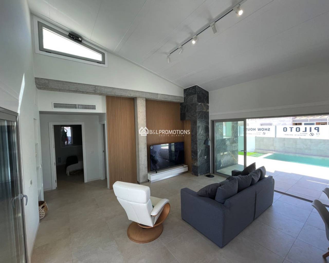 The villas are located on plots of 260 m2 and are completely walled. The houses have a spacious living room with open kitchen of 35 m2, patio doors to a spacious patio, 3 bedrooms and 2 bathrooms and from the living room you enter a beautiful terrace with a private pool. The house also has a roof terrace of 43 m2 and behind the house there is a carport.
