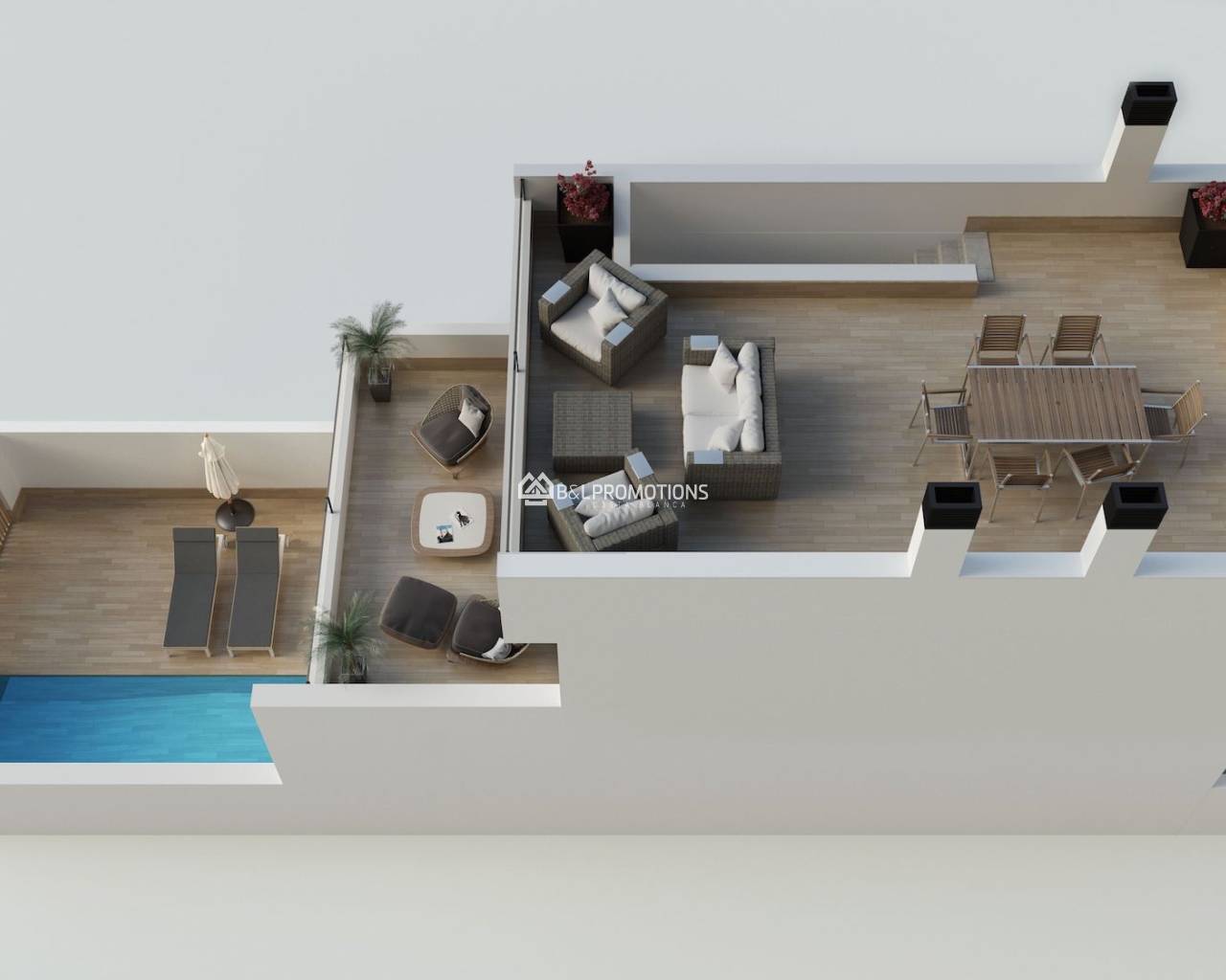 Beautiful homes with 3 bedrooms, 2 bathrooms, nice living room with open kitchen, an extra storage room, a spacious terrace overlooking your private pool and a very nice roof terrace.