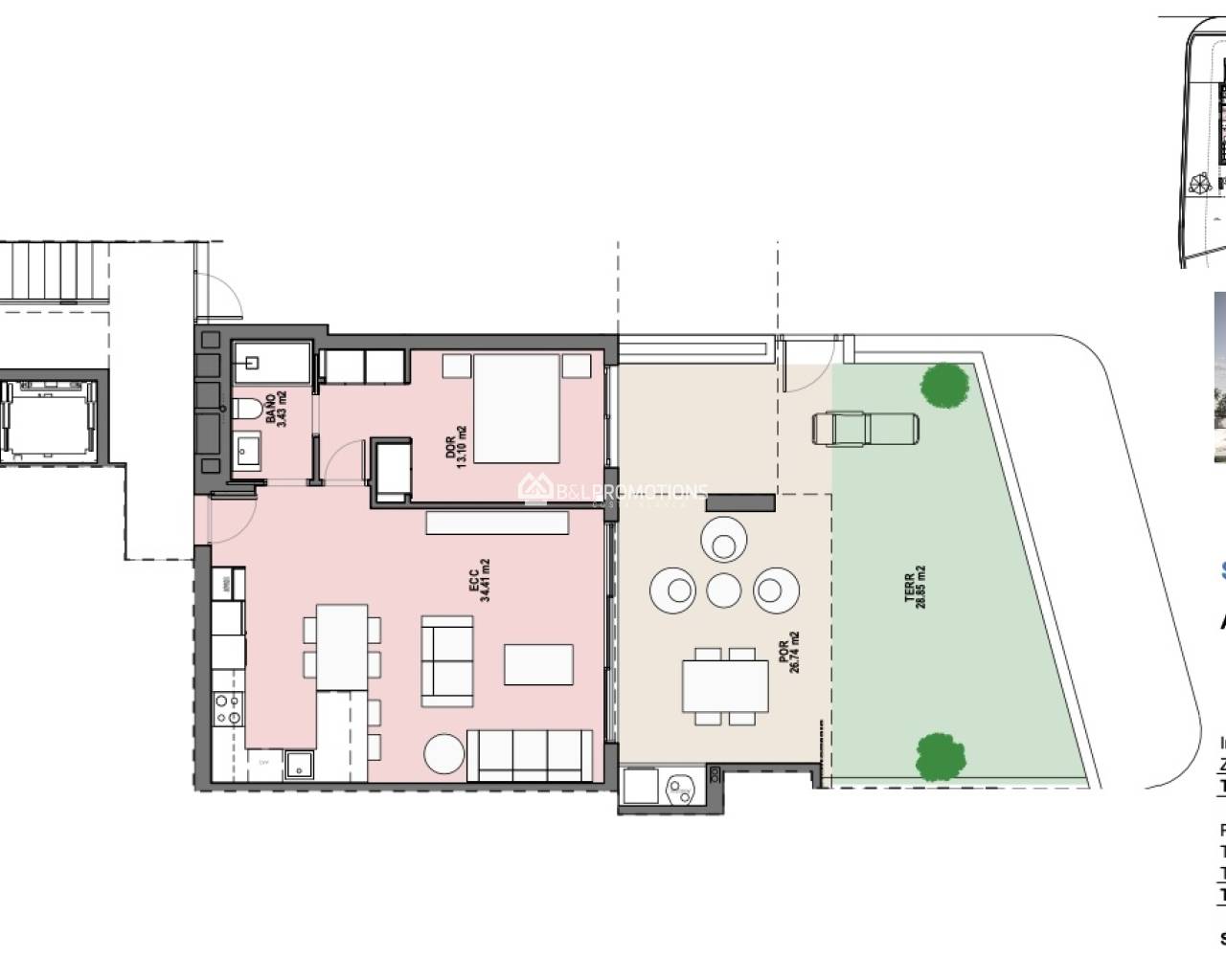The flats are very modern and luxuriously decorated and of course there is a communal swimming pool at the flats themselves.