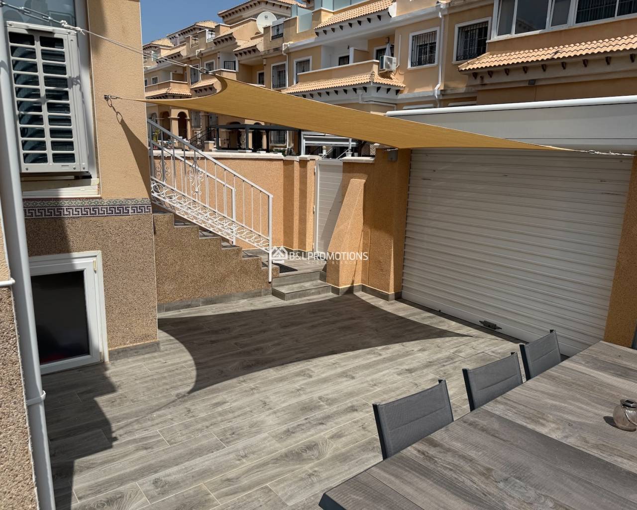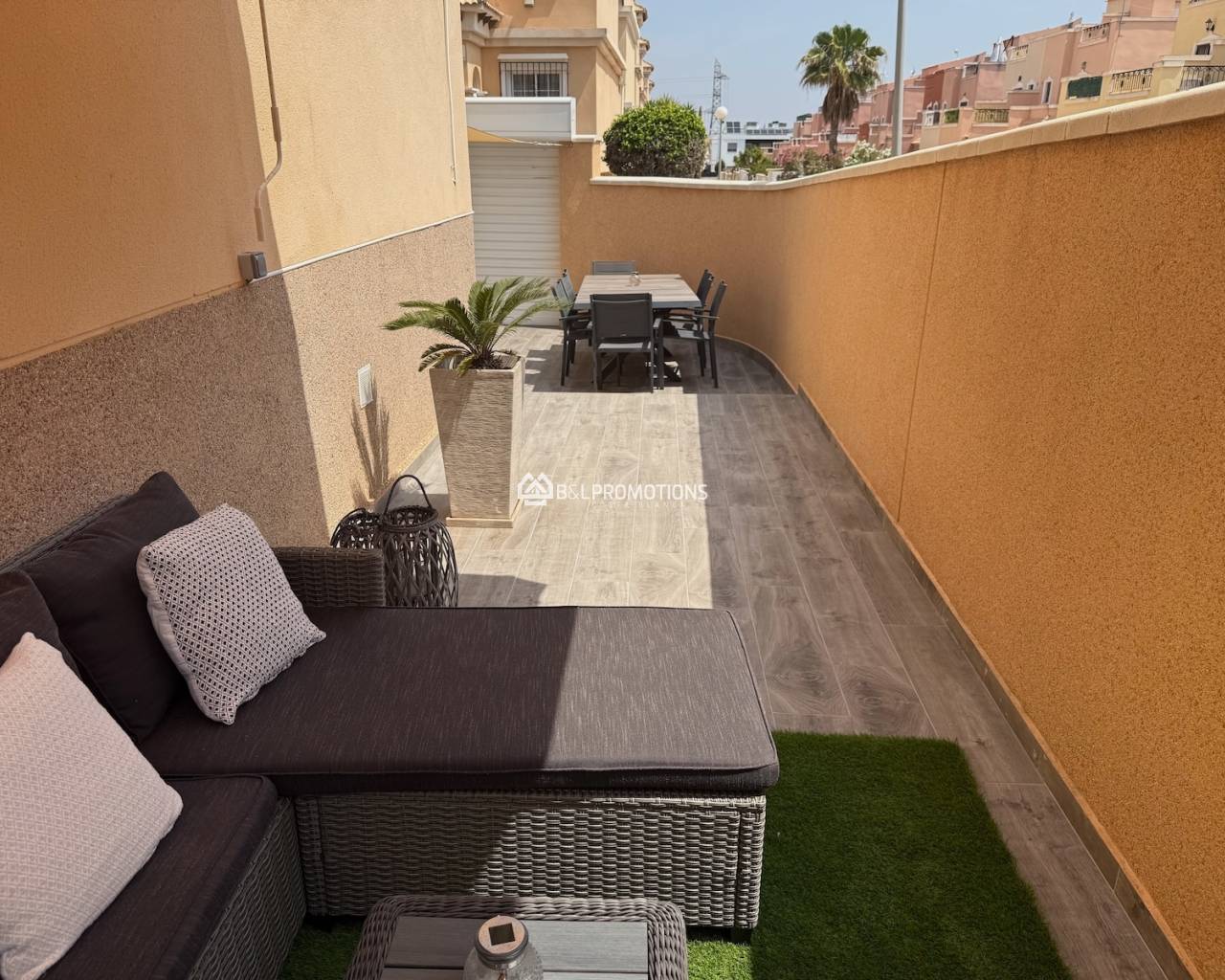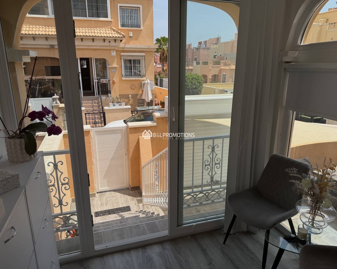 This charming corner townhouse is located in a quiet urbanization in Villamartin, just a short walk from the lively Villamartin Plaza, supermarkets, and a variety of restaurants and bars. The beach is only 3 km away, and the popular La Zenia Boulevard shopping center is also nearby.
