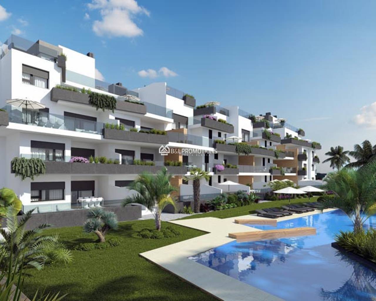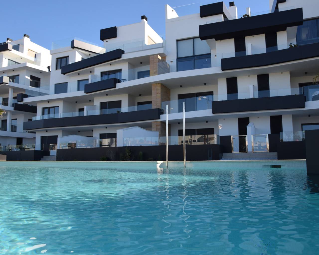 Beau appartement designé avec 2 chambres dans un complexe de taille réduite. Ces nouveaux logements sont situés dans un fantastique emplacement et prochedu magnifique centre commercial Zenia Boulevard, loisirs, arrêt de bus, la plage et la proximité de 3 terrains de golf.