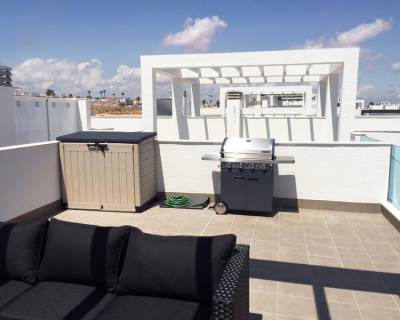 Ce superbe appartement contemporain non-fumeur est construit aux normes plus récentes et se trouve à 1ère étage. La terrasse fait face à un grand jardin commun avec une très grande “infinity” piscine avec jacuzzi. On entre dans un petit couloir ouvrant à une salle de séjour spacieuse avec une porte coulissante en verre énorme à la terrasse. Derrière le salon, il y a une cuisine entièrement équipée avec tout confort. Une des chambres a une salle de bains avec des parois de verre. Le hall mène à la deuxième chambre à coucher et à la deuxième salle de bains. L’escalier de la terrase mène à toit-terrase enorme. Cette terrase est équipée avec un lounge set, énorme table à manger, barbeque et un frigo. La propriété est équipée pour 6 personnes et dispose de connexion wi-fi et télévision internationale.