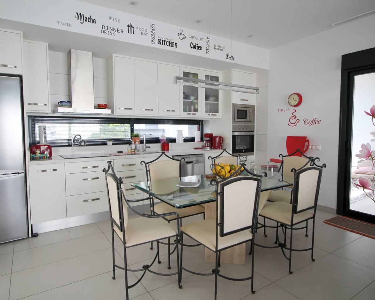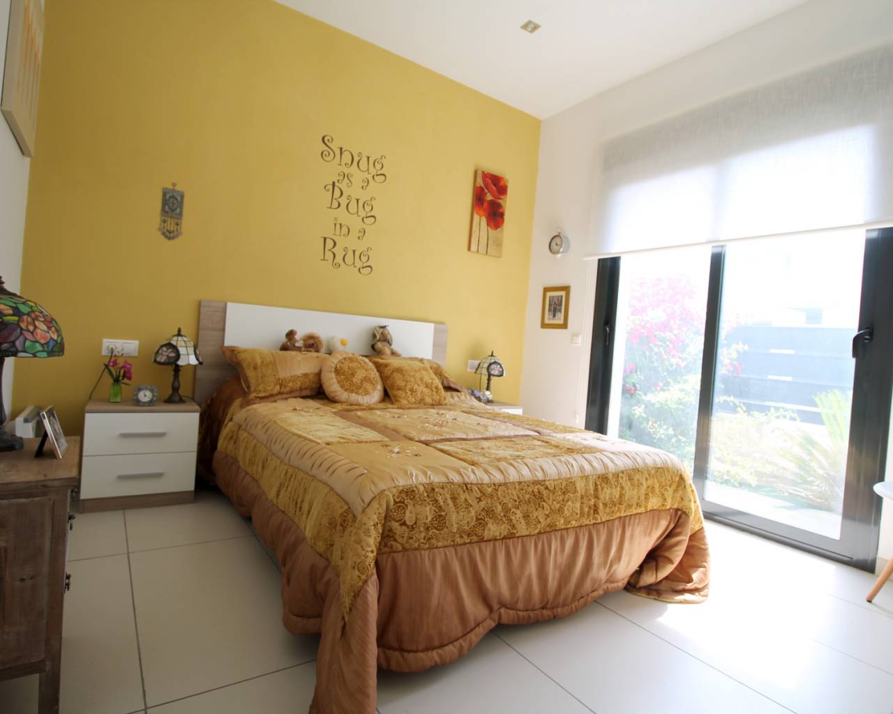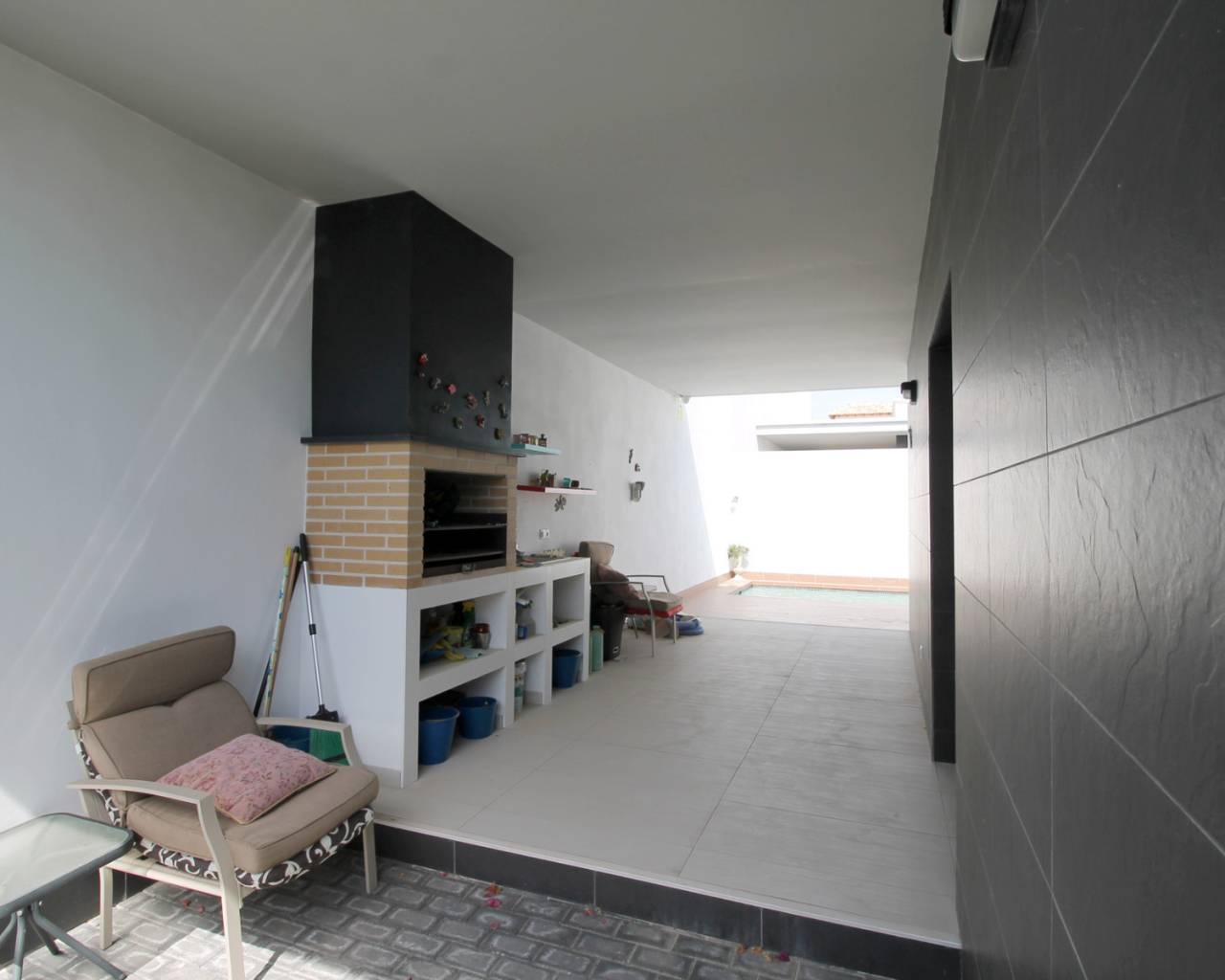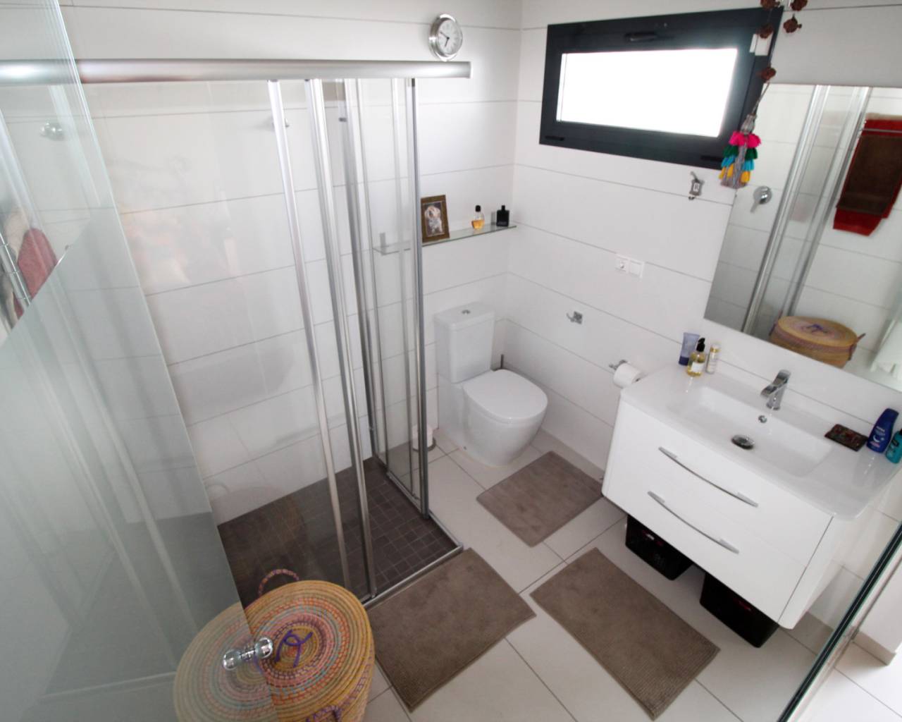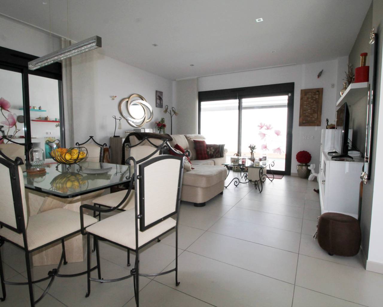 La maison est construite sur un seul niveau. De l'entrée, vous accédez au salon spacieux avec cuisine ouverte, 3 chambres, 2 salles de bain, une belle terrasse couverte avec cuisine d'été et une terrasse ouverte avec piscine privée. De la terrasse, un escalier mène à un eénorme solarium offrant une belle vue dégagée. Le complexe résidentiel dispose également d'une piscine communautaire.