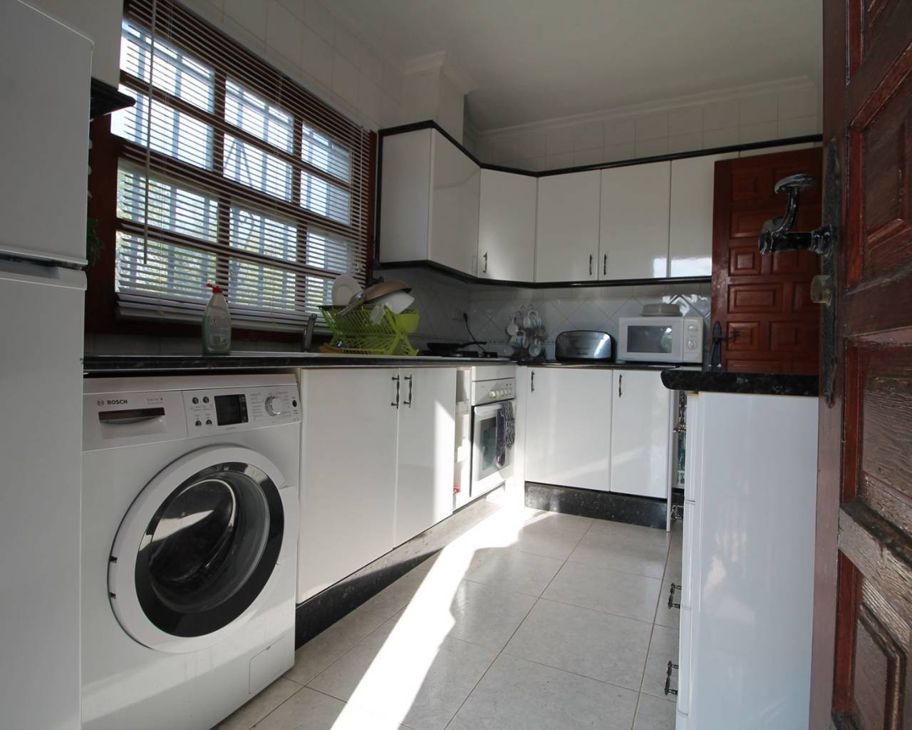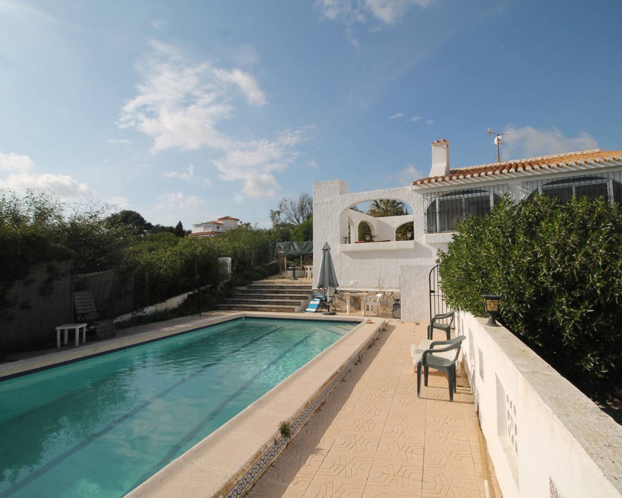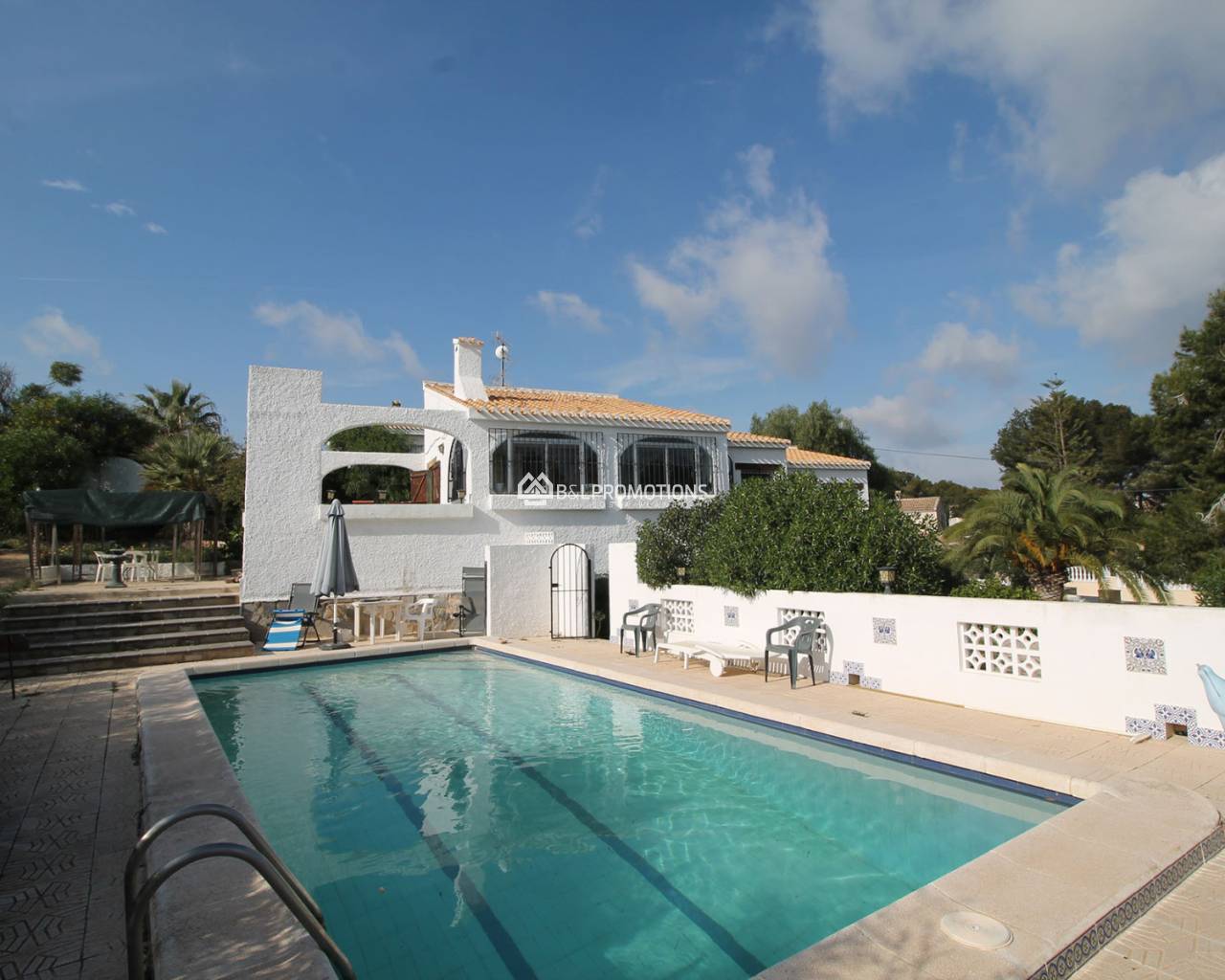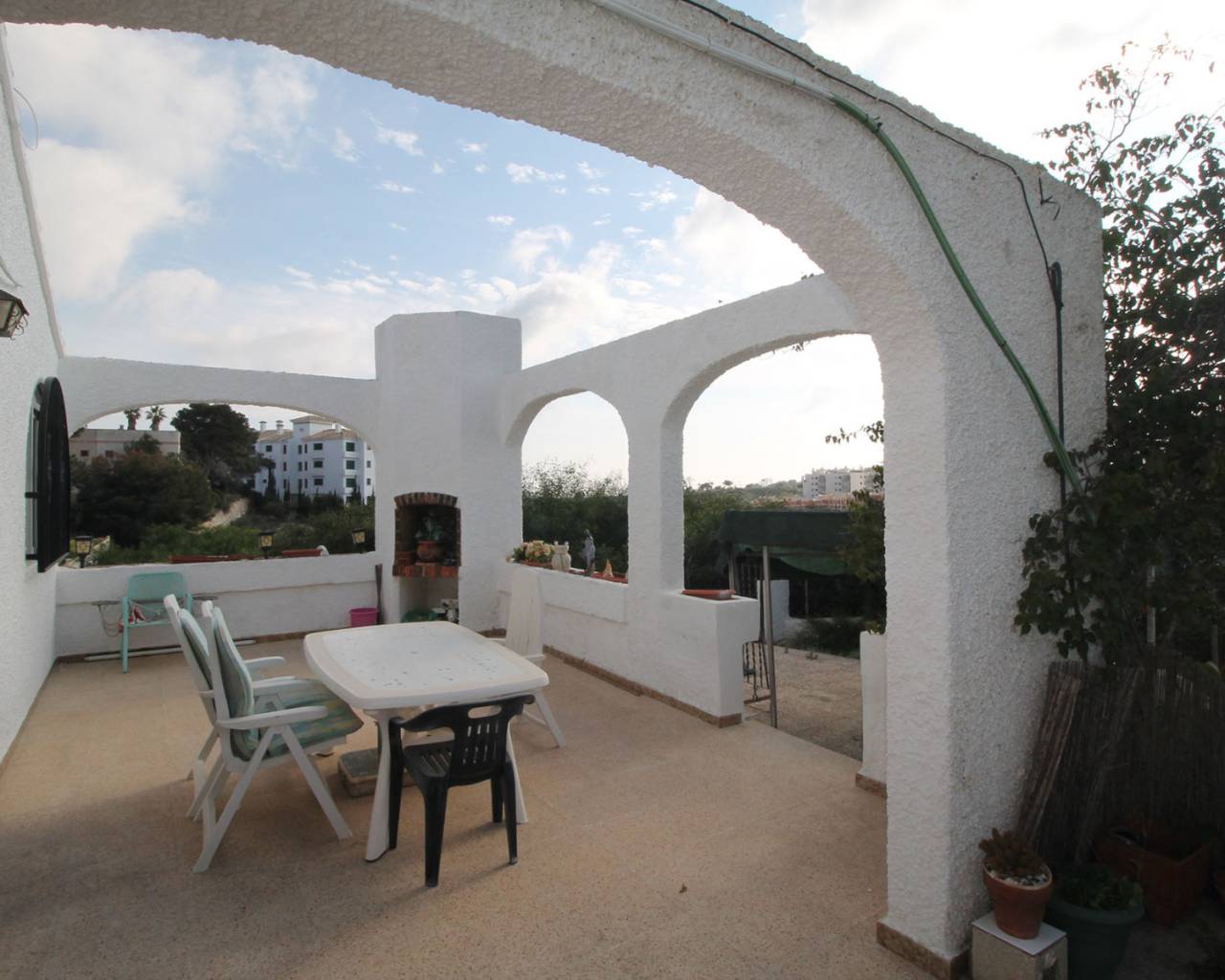 Cette villa indépendante est située dans le quartier résidentiel de Las Filipinas à Orihuela Costa. La villa est située au sommet de l'une des parcelles les plus hautes de la région et offre donc une vue imprenable. Il y a 2 grandes terrasses, une couverte et scellée avec du verre. Le salon est d'environ 30 m2 et a un haut plafond avec des poutres en bois. La cuisine a une connexion ouverte avec le salon. Il y a 3 chambres et 2 salles de bain. Sous la maison il y a un garage. La maison est en bon état. Les 4 parcours de golf de Villamartín, Las Ramblas, Campoamor et Las Colinas sont à moins de 3 km.