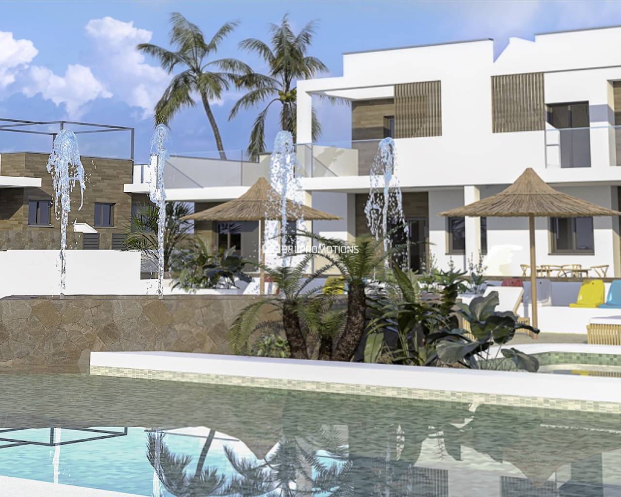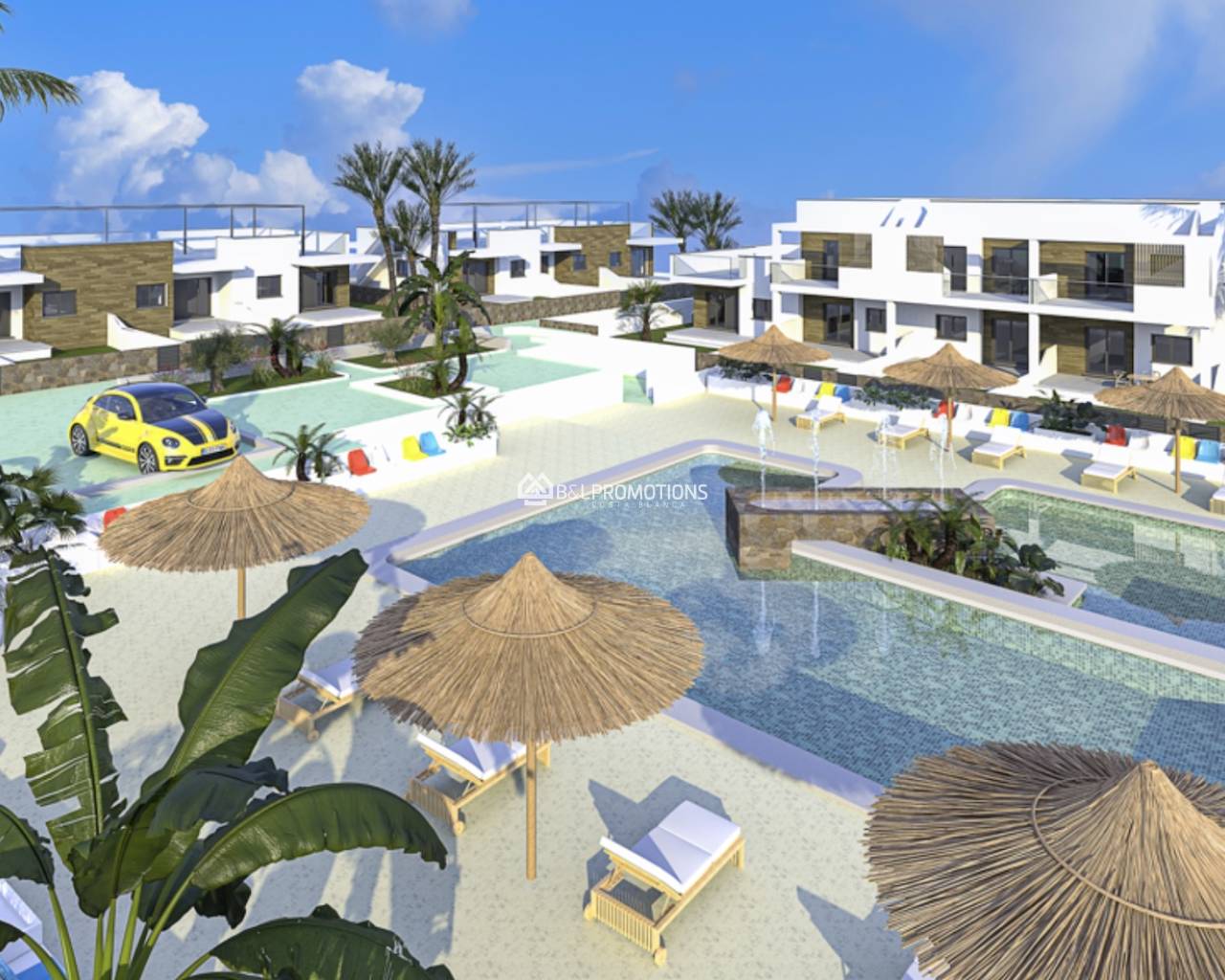 Toutes les propriétés disposent d'une grande terrasse donnant sur les espaces verts et la piscine commune, pour une ambiance de vacances assurée. Le village dynamique de Pilar de la Horadada se trouve à seulement 2 km.