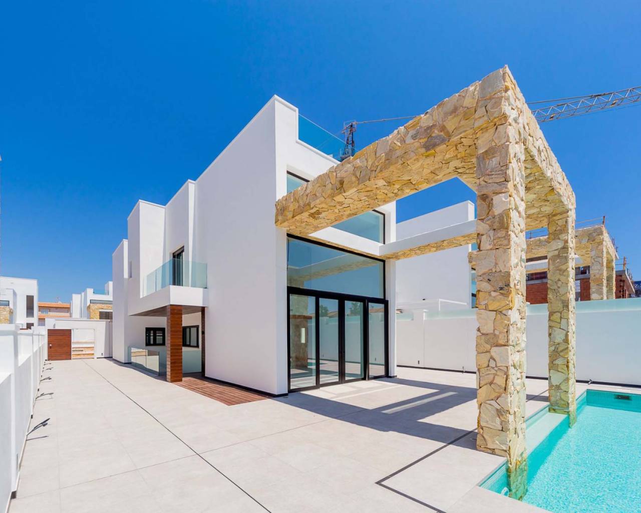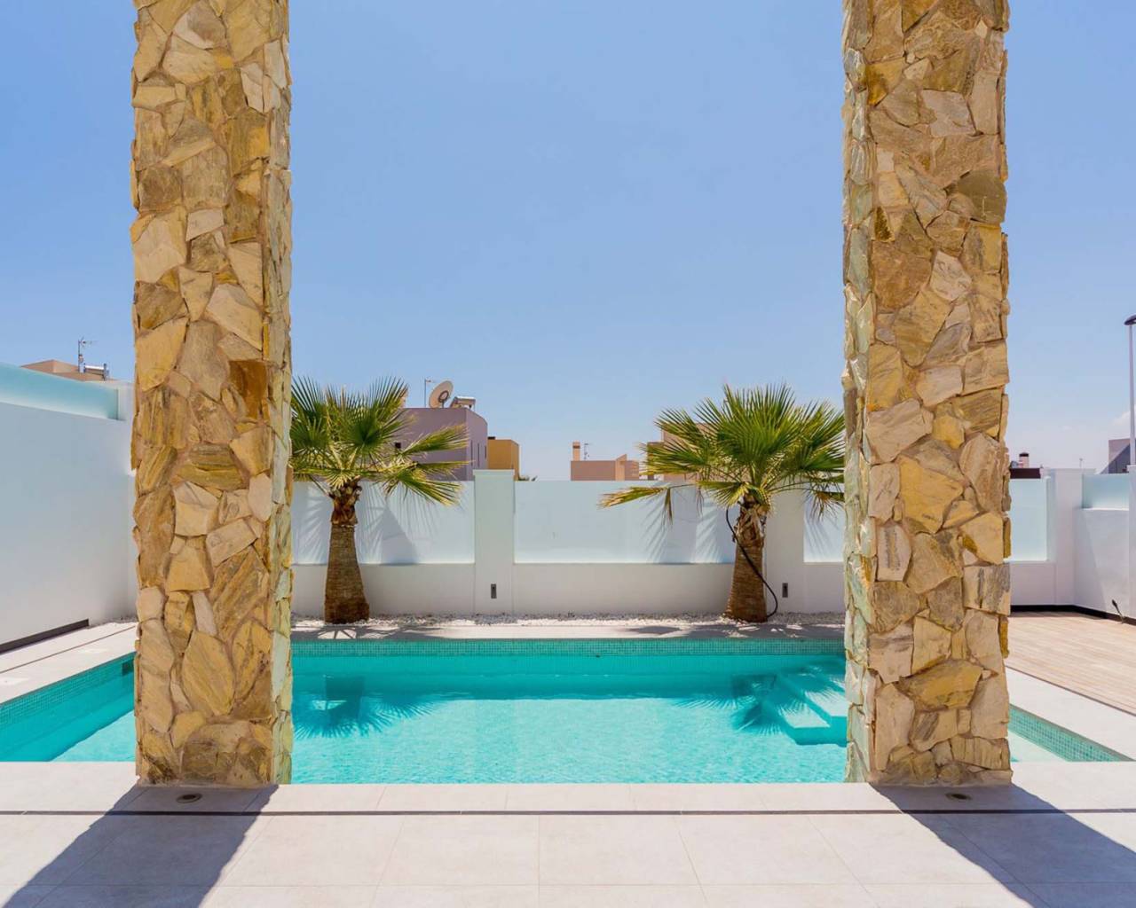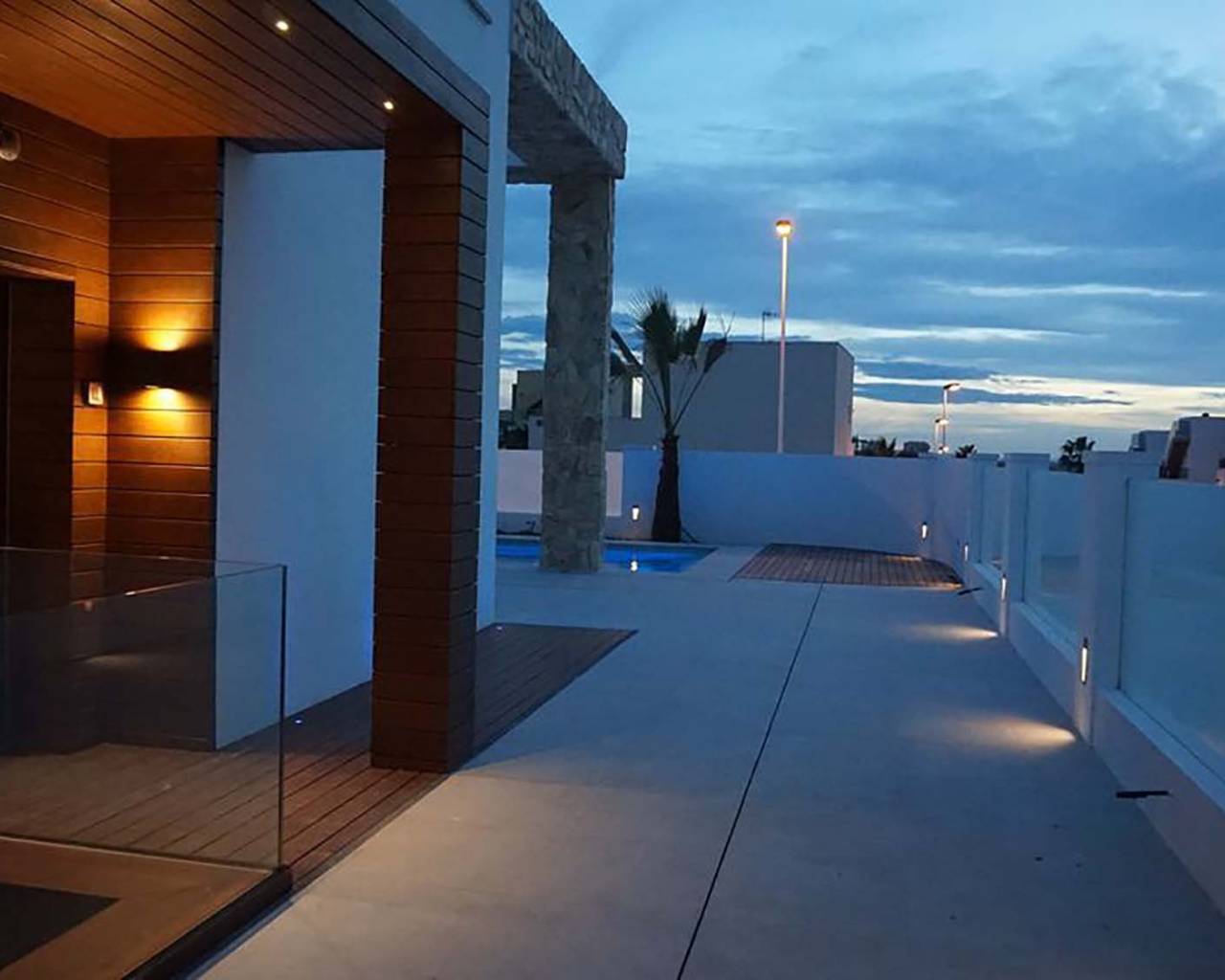 Cette impressionnante villa a été construite à la Torre del Moro à Torrevieja. Le tronçon accidenté de la côte, à quelques centaines de mètres du départ de la belle plage de sable de La Mata. Le quartier dispose d'une infrastructure très complète avec de nombreux restaurants, magasins et un certain nombre de supermarchés. Le centre de Torrevieja avec son port de plaisance à la mode est à seulement 3 km.