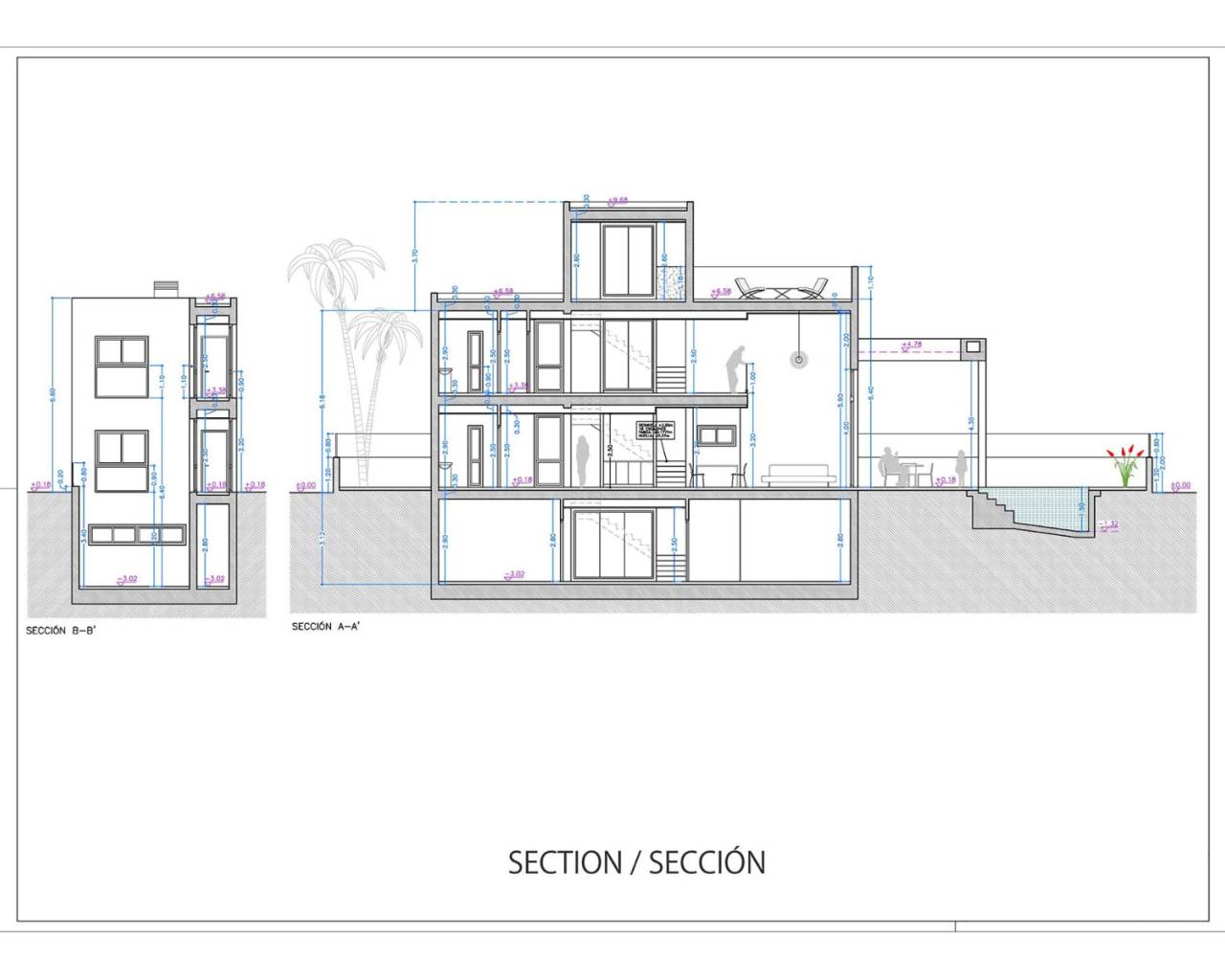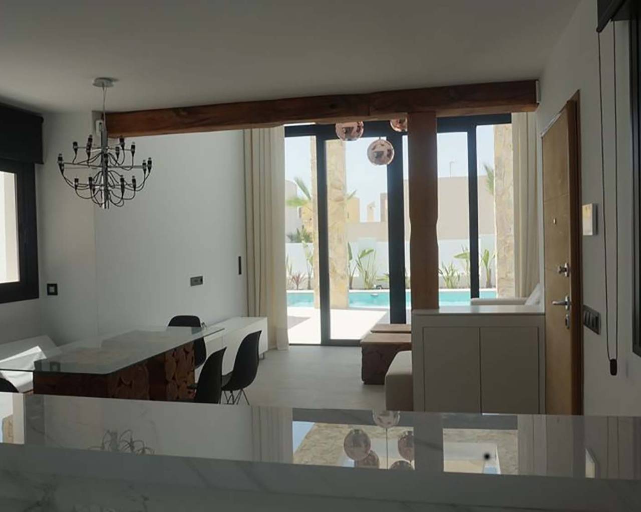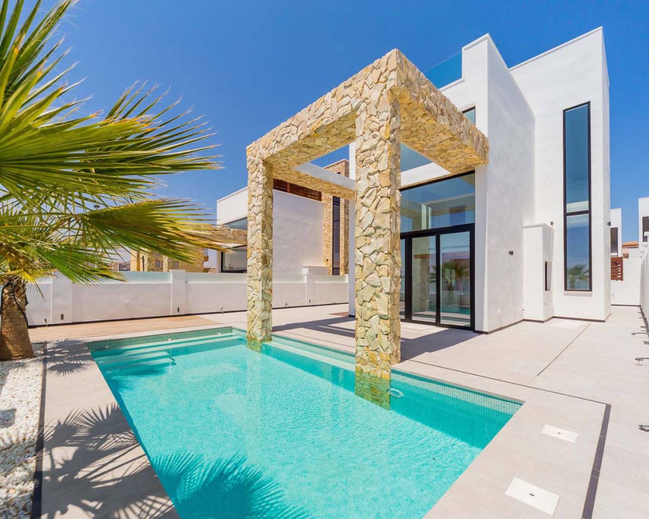 Cette impressionnante villa a été construite à la Torre del Moro à Torrevieja. Le tronçon accidenté de la côte, à quelques centaines de mètres du départ de la belle plage de sable de La Mata. Le quartier dispose d'une infrastructure très complète avec de nombreux restaurants, magasins et un certain nombre de supermarchés. Le centre de Torrevieja avec son port de plaisance à la mode est à seulement 3 km.