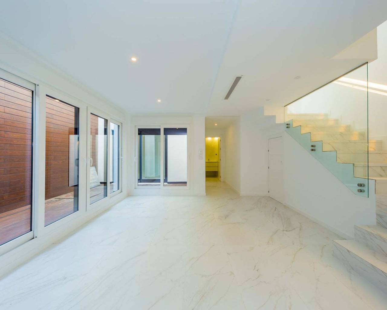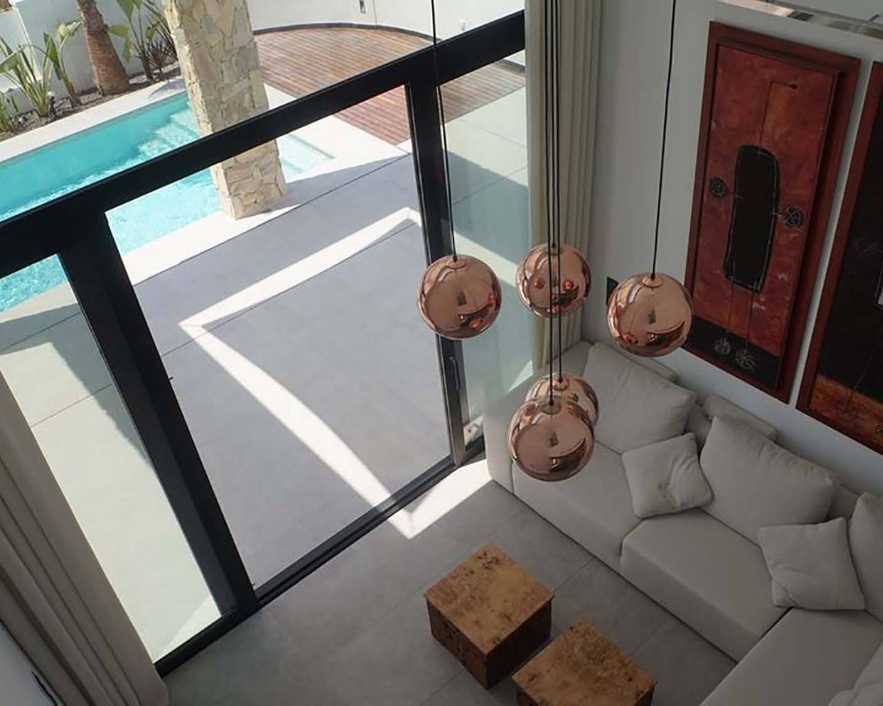 La villa est très spacieuse. Au rez-de-chaussée, vous trouverez un salon spacieux, un coin repas et une cuisine ouverte. Derrière cela une chambre avec salle de bain. Une énorme façade en verre donne une vue sur le jardin et la belle piscine. Au premier étage, il y a 2 autres chambres et 2 salles de bains. Au-dessus du 1er étage, vous trouverez une immense terrasse sur le toit avec une belle vue.
