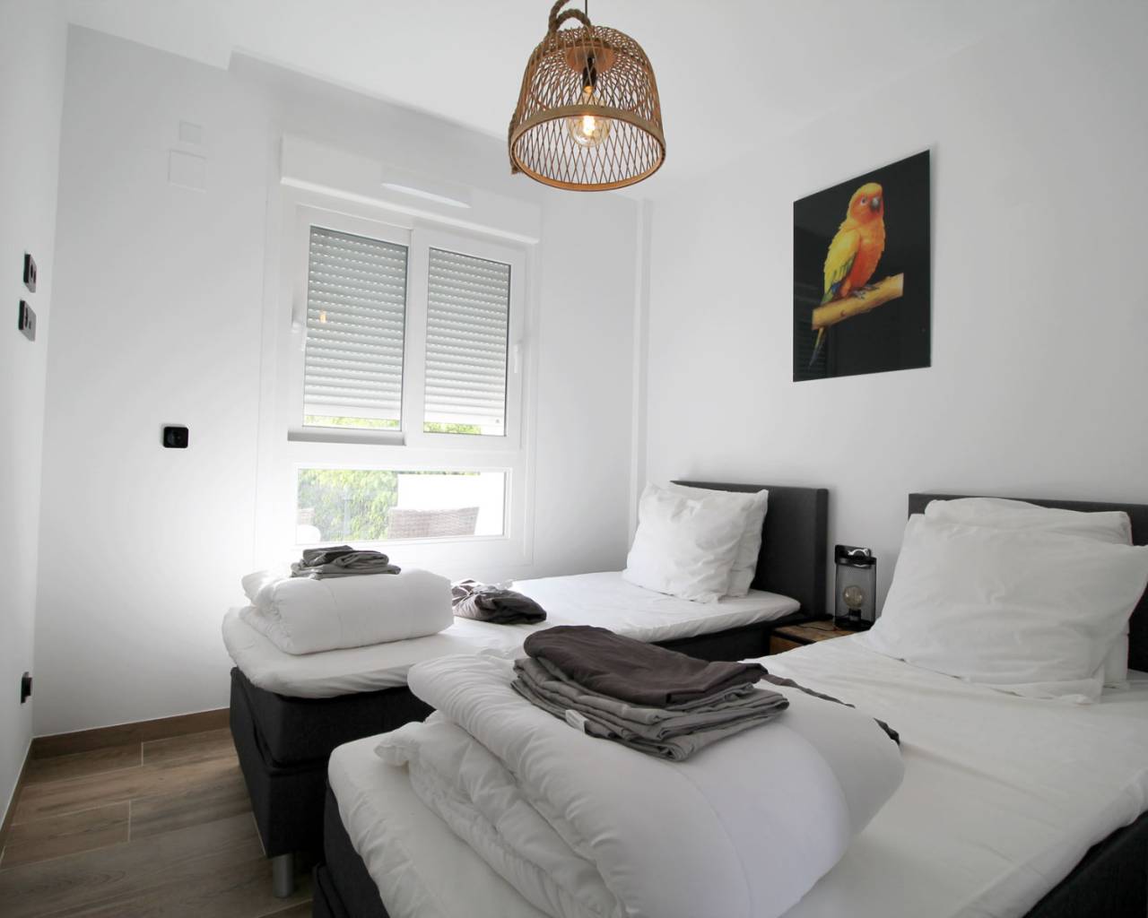 L'appartement se distingue par son espace et son design. Il comprend un grand salon avec une élégante cuisine ouverte, 2 chambres et 2 salles de bains. Décoré avec goût et équipé de toutes les commodités modernes, l'appartement dispose d'internet, Smart TV, climatisation avec pompe à chaleur, lave-vaisselle, lave-linge et une cuisine entièrement équipée.
