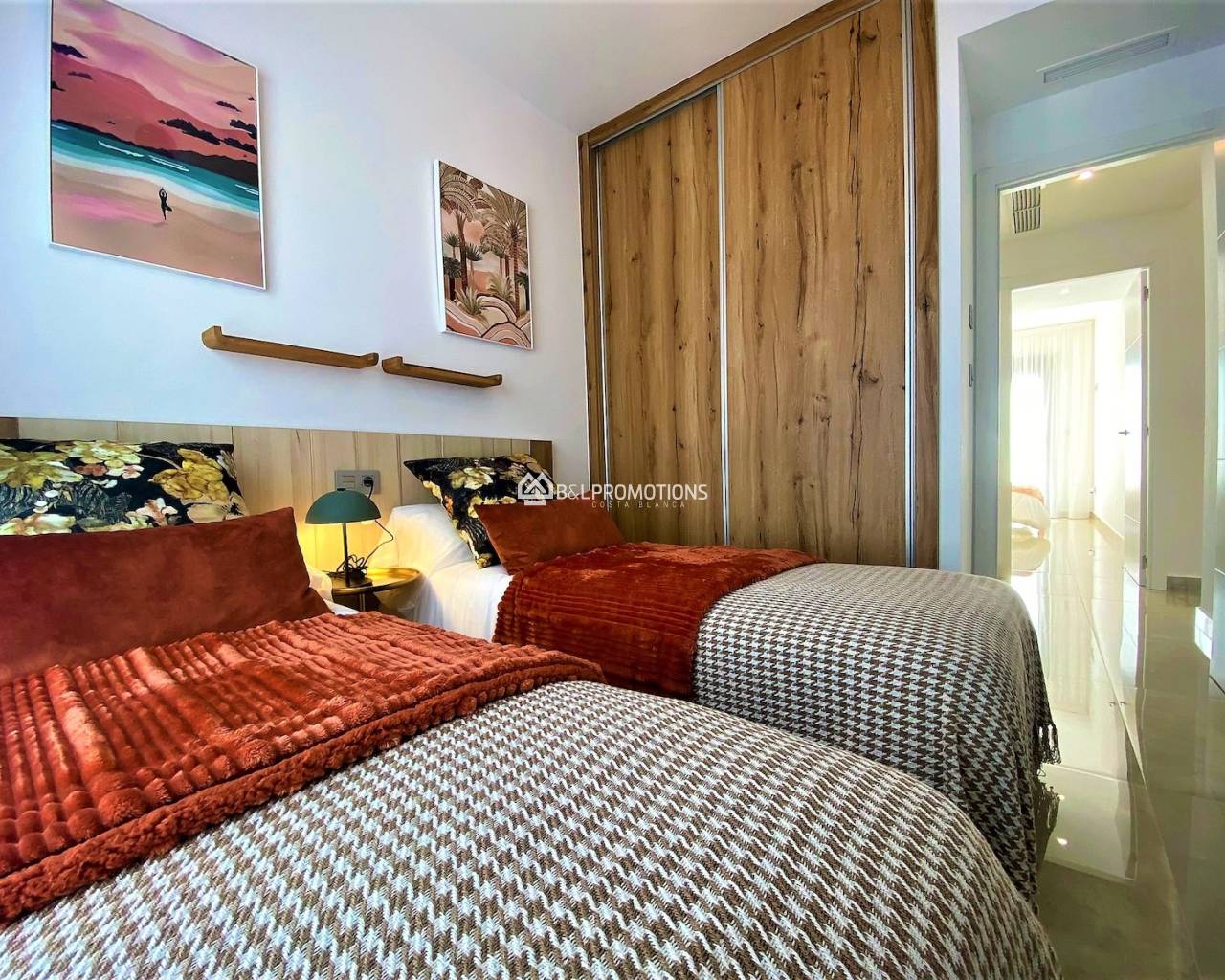 Ici, nous avons des appartements spacieux avec 2 chambres à coucher, 2 salles de bains, un grand salon, une cuisine ouverte et chaque appartement a une terrasse spacieuse.