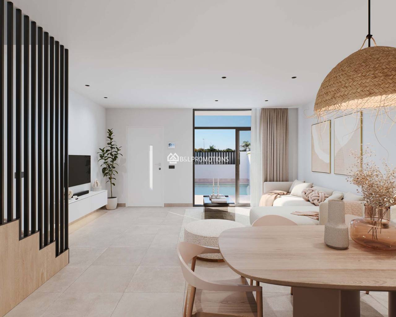 À la périphérie de la ville animée de San Pedro del Pinatar, et à seulement 2 km des magnifiques plages et de la nouvelle promenade du bord de mer de la Mar Menor, ces villas mitoyennes modernes sont en cours de construction.
