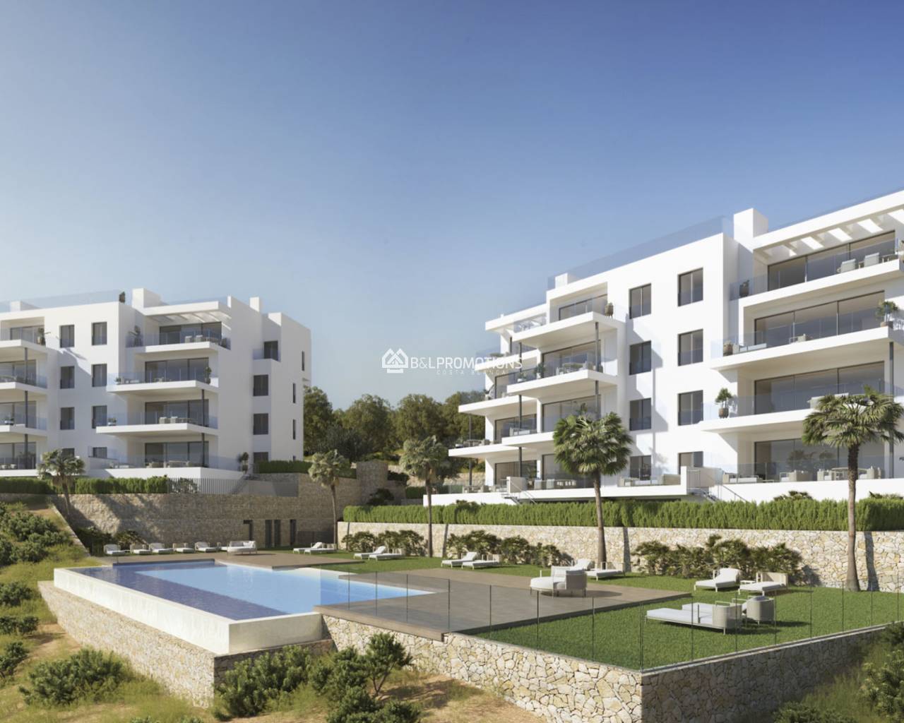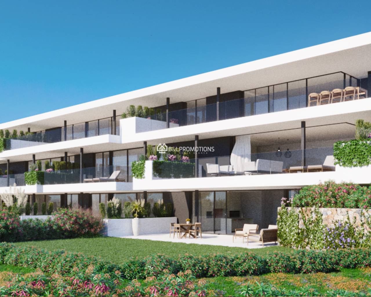 Magnifique nouvelle construction d'appartements à Las Colinas. Appartements très spacieux avec 3 chambres à coucher, 2 salles de bain, une toilette séparée, un grand salon avec cuisine ouverte entièrement équipée, un balcon et une terrasse très spacieuse.