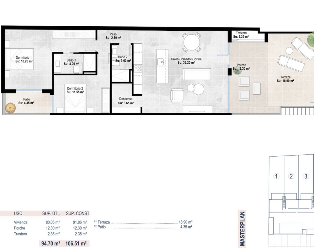 Magnifique complexe de petite taille nouvellement construit à distance de marche de la ville de San Pedro del Pinatar. Les appartements sont très spacieux et pratiquement meublés.
