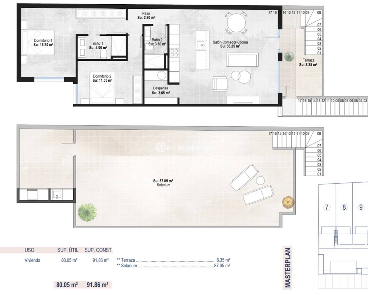 Les appartements sont très spacieux et pratiquement meublés. De belles terrasses, un beau jardin commun et une piscine avec zone de relaxation.