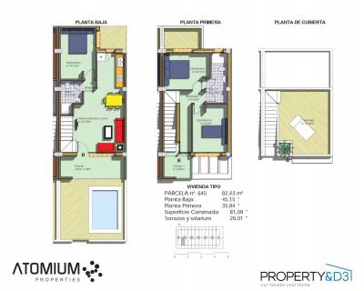 Les maisons sont très pratiques et disposent de 3 chambres à coucher, 2 salles de bains, un salon avec cuisine ouverte ainsi qu'une terrasse avec piscine privée et chaque maison a son propre solarium.