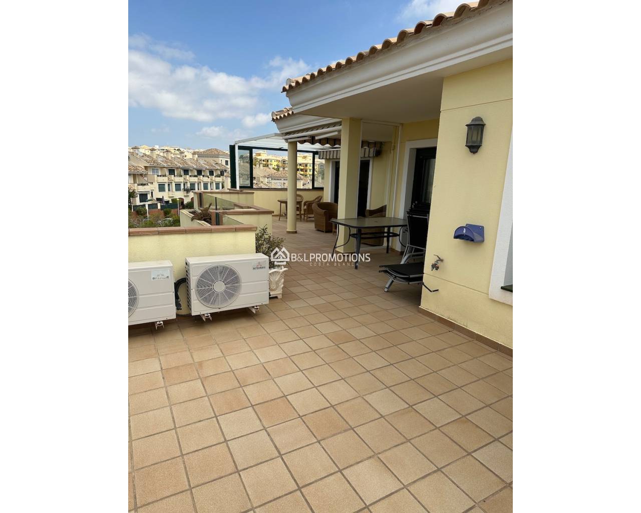 Nous proposons cet appartement très spacieux avec tout ce qui est inclus dans le prix. Il y a un grand salon de 80m2 ainsi qu'une grande cuisine entièrement équipée avec tous les appareils nécessaires. Il y a 2 salles de stockage attachées à la cuisine et il y a 3 chambres spacieuses de taille normale ainsi que 3 salles de bains, toutes en-suite. Il y a également des toilettes séparées et un grand placard encastré dans le couloir et, comme déjà indiqué, une immense terrasse.