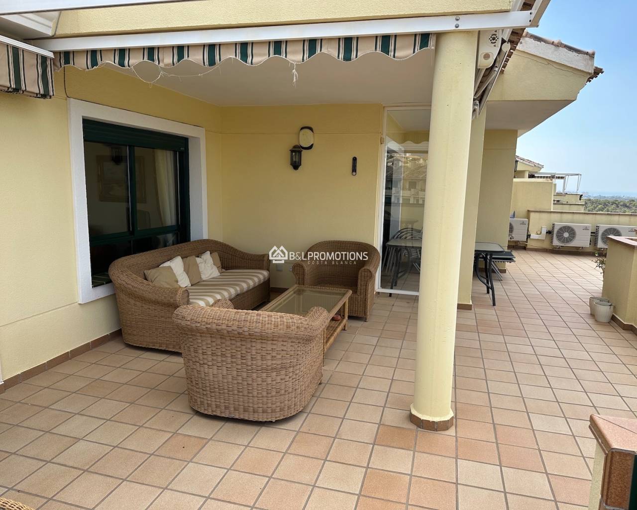 Superbe appartement avec des vues fantastiques sur le terrain de golf de Campoamor et la mer Méditerranée. Par beau temps, on peut également voir la Mar Menor depuis l'immense terrasse.