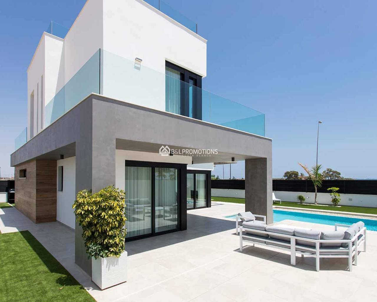 Ezek a vonzó villák közvetlenül a tengerparton és Los Alcázares golfpályája mellett épülnek. A villák előtt van egy védett terület, amely garantálja a tengerre néző kilátást.