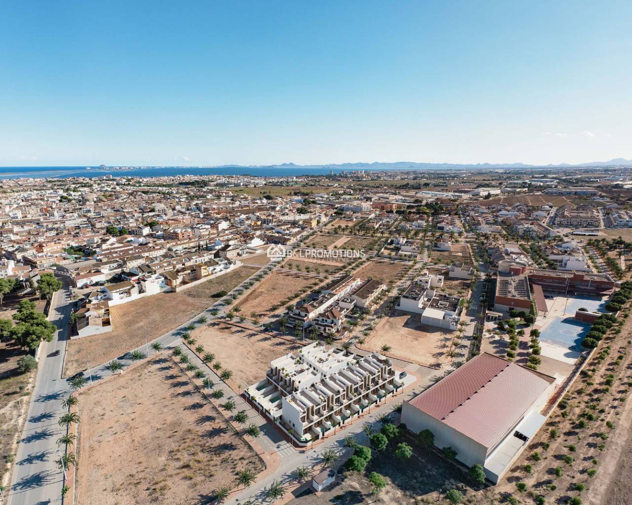 Közvetlenül San Pedro del Pinatar nyüzsgő városa mellett, alig 2 km-re a gyönyörű strandoktól és a szép, újonnan épült Mar Menor melletti sétánytól, épülnek ezek az új ikervillák.